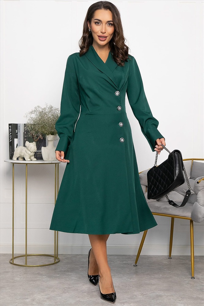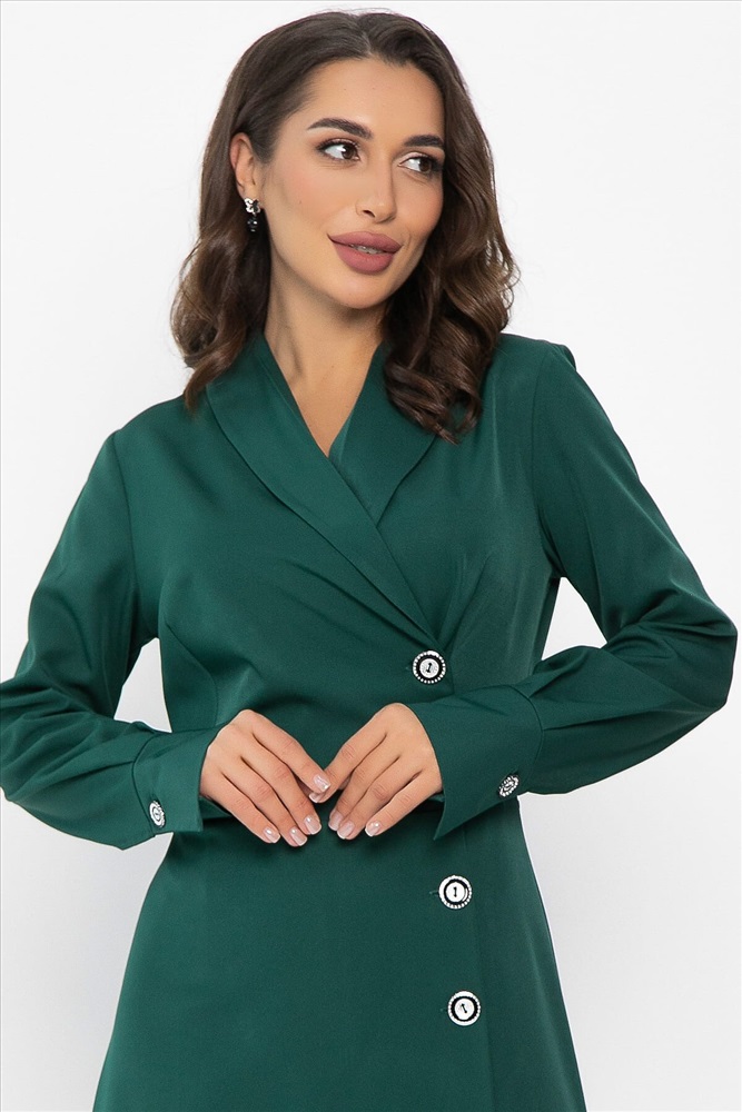 Состав : 95% полиэстер, 5% эластан Материал : костюмный Цвет : Зеленый Принт : отсутствует Длина : миди Силуэт : полуприлегающий Карманы : Отсутствуют Подкладка : Отсутствует Вид застежки : пуговицы Декоративные элементы : пуговицы Длина : 46-115 см, 48-115 см, 50-116 см, 52-116 см, 54-117 см