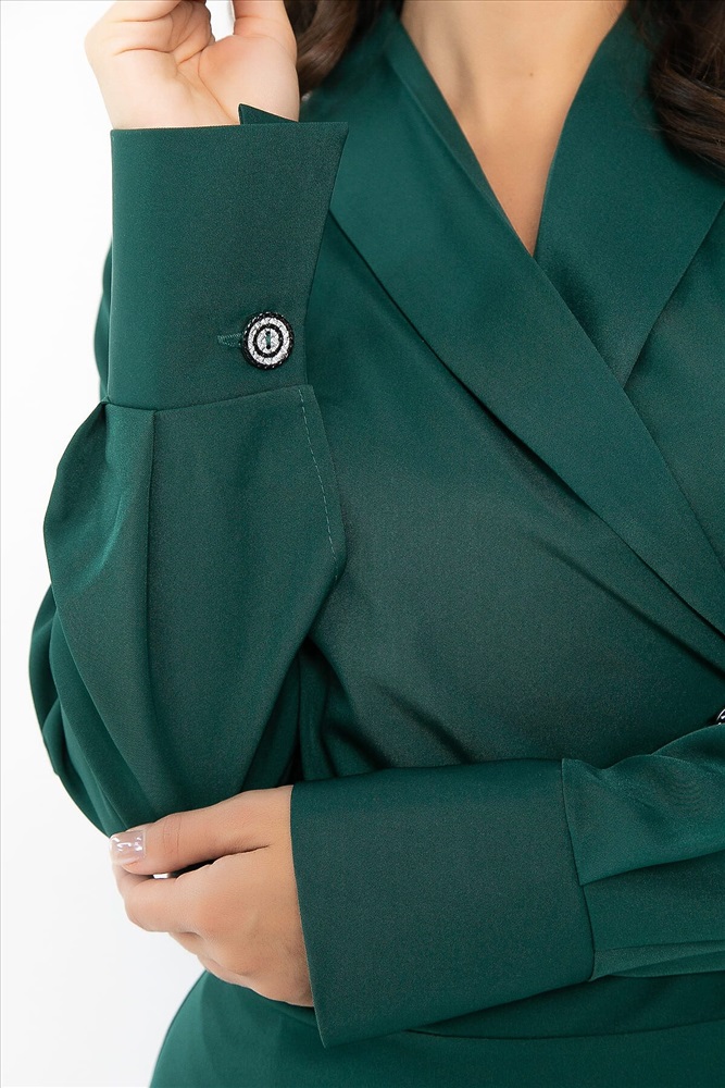 Платье на запах — это настоящая находка для женщин, которые хотят выглядеть стильно и уверенно. Оно сочетает в себе элегантность, красоту и изысканность, делая каждую женщину воплощением грации и уверенности. Длинный втачной рукав с акцентной манжетой придаёт платью дополнительную элегантность и подчёркивает изящество силуэта. Это платье идеально подходит для деловых встреч и офисного гардероба.