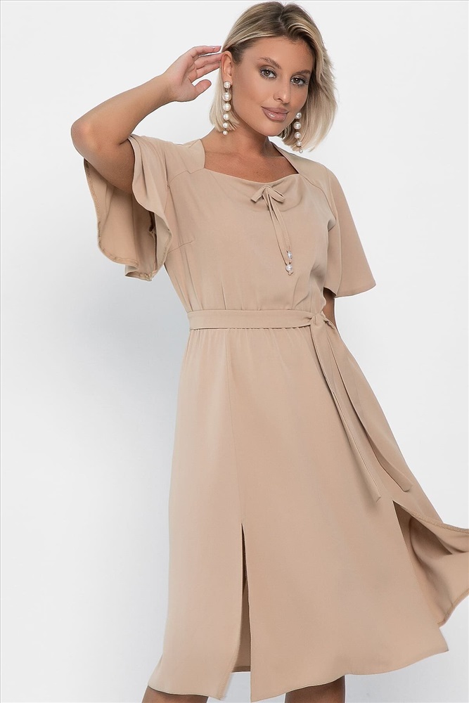 ID товара: 1178527 Состав: 95% Полиэстер, 5% Эластан Сезон: Весна/Лето Длина: Миди Фасон: Приталенный Рукав: короткие Вырез горловины: Каре Декоративные элементы: Пояс Основная ткань: Полиэстер Стиль: Романтический Страна бренда: Россия Страна производства: Россия Состав : 95% полиэстер, 5% эластан Материал : плательный Цвет : Бежевый Принт : отсутствует Длина : миди Силуэт : приталенный Карманы : Отсутствуют Подкладка : Отсутствует Вид застежки : сзади застежка капелька Декоративные элементы : юбка клешенная с двумя разрезами спереди, декоративный бантик с жемчугом Длина : 44-114 см, 46-116 см, 48-118 см, 50-120 см Платье из струящейся ткани приталенного силуэта. Кареобразный вырез изящно подчеркивает линию декольте. Юбка клешенная с двумя разрезами спереди. В таком платье вы точно будете в центре внимания. Оно достаточно сдержанно, но в то же время наполнено акцентными деталями, что идеально подчеркнет вашу красоту. Изделие имеет декоративный бантик с жемчугом. По талии на резинке. Внимание! Рекомендуем ориентироваться на размерную сетку и выбирать свой привычный размер, согласно размерной таблице. *Допуск отклонения длины при массовом производстве 1-3 см является нормой. Уход за изделием: Ручная стирка или стирка в машине при температуре до 30 °C, деликатный режим. Не использовать отбеливатели. Разрешена глажка при температуре до 110 °C. При глажке использовать специальную насадку на подошве утюга, гладить с паром. Не замачивать и не выжимать. Стирать изделие наизнанку, отдельно от других вещей. Комментарии к товару