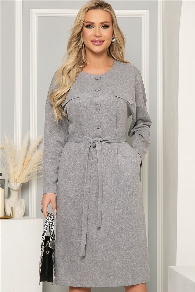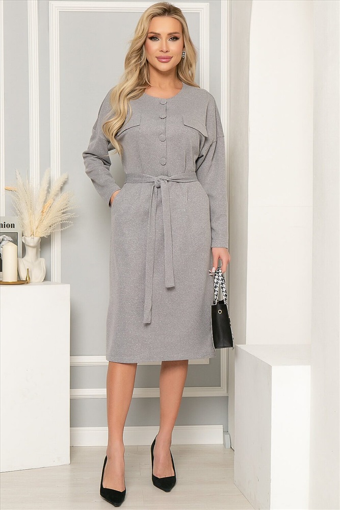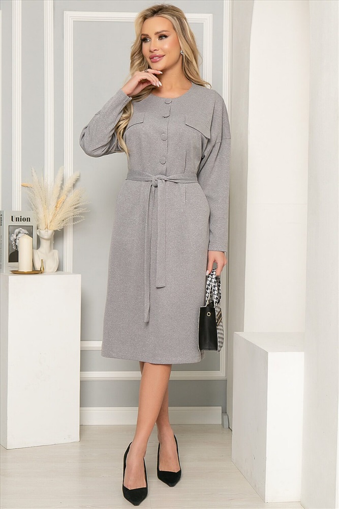 ID товара: 832550 Состав: 60% Полиэстер, 35% Вискоза, 5% Эластан Сезон: Осень/Зима Длина: Ниже колена Фасон: Приталенное Рукав: Длинные Вид застежки: Пуговицы Вырез горловины: Округлый Тип карманов: В шве Декоративные элементы: Пояс Основная ткань: Полиэстер Стиль: Повседневный Страна бренда: Россия Страна производства: Россия Артикул: П4887. Ткань: трикотаж. Состав: 60% п/э, 35% вискоза, 5% эластан. Цвет: серый. Вид застежки: пуговицы по переду. Силуэт: приталенный. Карманы: есть. Тип горловины: округлый. Подкладка: отсутствует. Длина готового изделия по спинке: 44-46/ 107 см, 48/ 108 см, 50/ 109 см, 52/ 110 см, 54/ 111 см. Рост модели: 168 см. Стильное платье с лаконичным дизайном для вашего продуманного делового образа. Гармоничная длина платья позволяет сочетать его с разнообразными вариантами обуви. По линии талии - отрезное, по переду застёгивается на пуговицы. обтянутые основной тканью. Пояс из основной ткани входит в комплект. Уход за изделием: бережная стирка до 30 градусов; нельзя отбеливать; деликатный отжим; гладить при t не более 110 С; гладить с изнанки. *Допуск отклонения длины при массовом производстве 1-3 см является нормой. Комментарии к товару