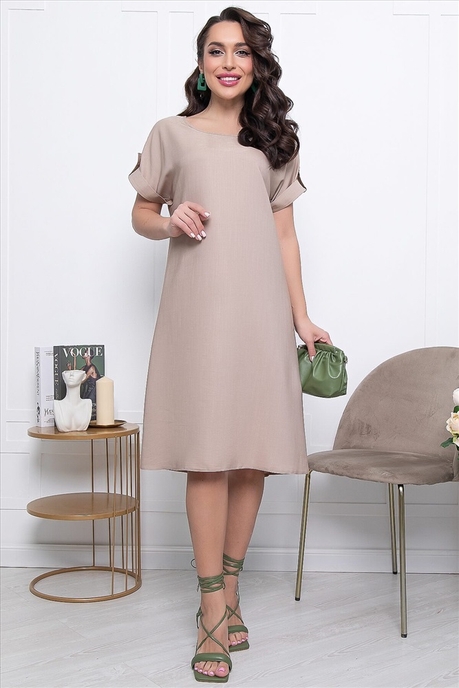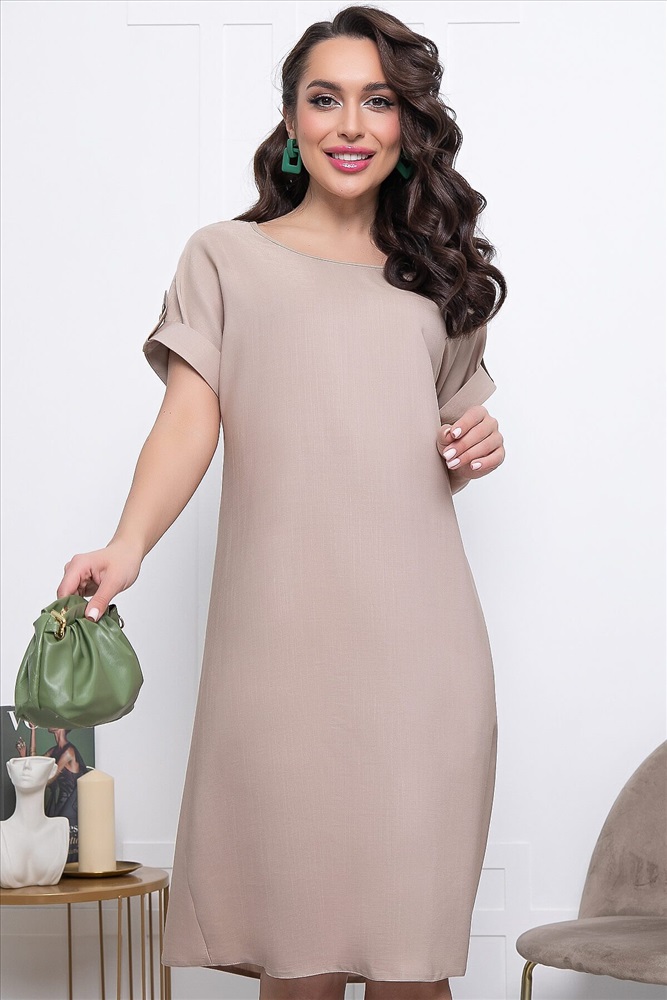 Артикул: П5808. Ткань: вискоза. Состав: 70% вискоза, 27% п/э, 3% эластан. Цвет: бежевый. Вид застежки: без застёжки. Силуэт: свободный. Карманы: отсутствуют. Тип горловины: округлый. Длина изделия по спинке: 46-48/ 104 см, 50-52/ 105 см, 54-56/ 106 см. Рост модели: 168 см.
