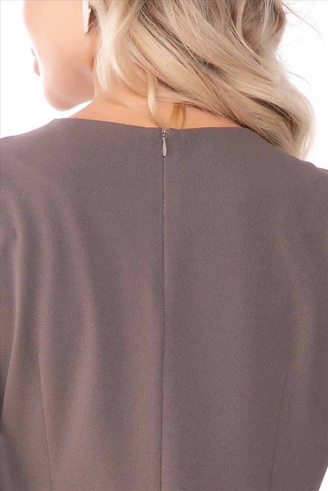 Артикул: П7304. Ткань: трикотаж "Скуба". Состав: 95% полиэстер, 5% эластан. Цвет: какао. Вид застежки: потайная молния по спинке. Силуэт: полуприлегающий. Карманы: отсутствуют. Тип горловины: округлый. Длина изделия по спинке: 44/ 97см, 48/ 97см, 50/ 98 см, 52/ 99 см, 54/ 100 см. Рост модели: 170 см.