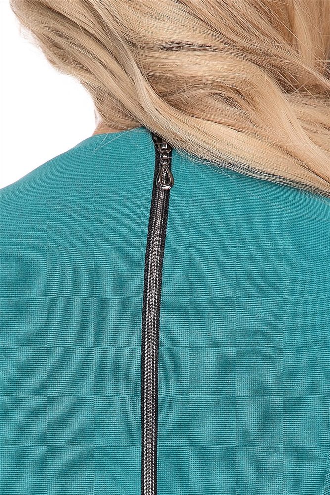 Артикул: П8358. Ткань: трикотаж. Состав: 95% п/э, 5% эластан. Цвет: бирюзовый. Вид застежки: молния по спинке. Силуэт: свободный. Карманы: есть. Тип горловины: лодочка. Длина изделия от плеча: 44-48/ 116 см, 50/ 118 см, 52-56/ 120 см. Рост модели: 168 см. и 170 см.
