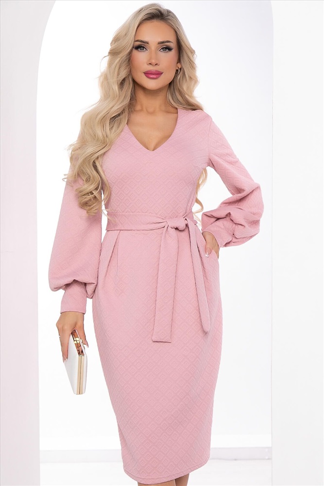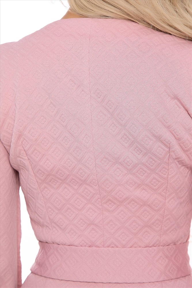 Элегантное платье из фактурной ткани создано для того, чтобы быть в центре внимания! Идеально подчеркивает преимущества фигуры. Рукав длинный, втачной, по низу широкий манжет. В комплект входит пояс из основной ткани.