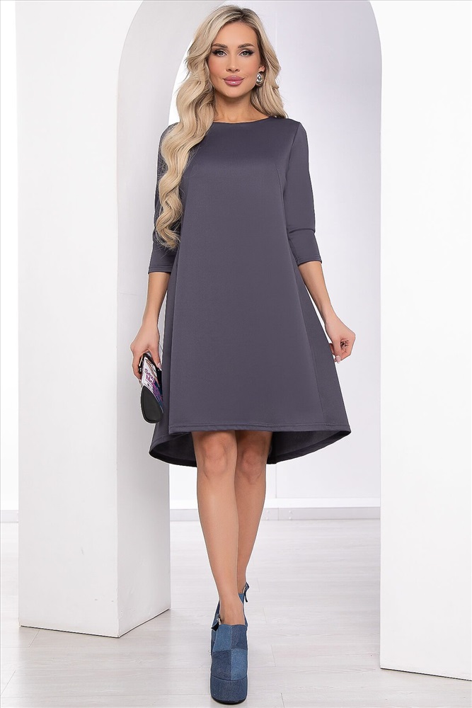 ID товара: 966808 Состав: 98% Полиэстер, 2% Эластан Сезон: Весна/Лето Длина: До колена Фасон: Трапеция Рукав: 3/4 Вид застежки: Пуговицы Вырез горловины: Округлый Основная ткань: Полиэстер Стиль: повседневный Страна бренда: Россия Страна производства: Россия Артикул: П8447. Ткань: трикотаж. Состав: 98% п/э, 2% эластан. Цвет: темно-серый. Вид застежки: пуговицы по спине. Силуэт: А-силуэт. Карманы: отсутствуют. Тип горловины: округлый. Длина изделия по спинке: 44-48/ 95 см, 50-54/ 98 см. Рост модели: 168 см. Очаровательное платье А-силуэта с асимметричным низом будет игриво смотреться на любой девушке. Такое трикотажное милое платье обязательно впишется в ваш повседневный гардероб. Оригинальная спинка с функциональными пуговицами придаст образу женственности. Втачной рукав 3/4, на талии легкая сборка. Уход за изделием: ручная стирка до 30 градусов; нельзя отбеливать; деликатный отжим; гладить при t не более 110 С; гладить с изнанки. *Допуск отклонения длины при массовом производстве 1-3 см является нормой. Комментарии к товару