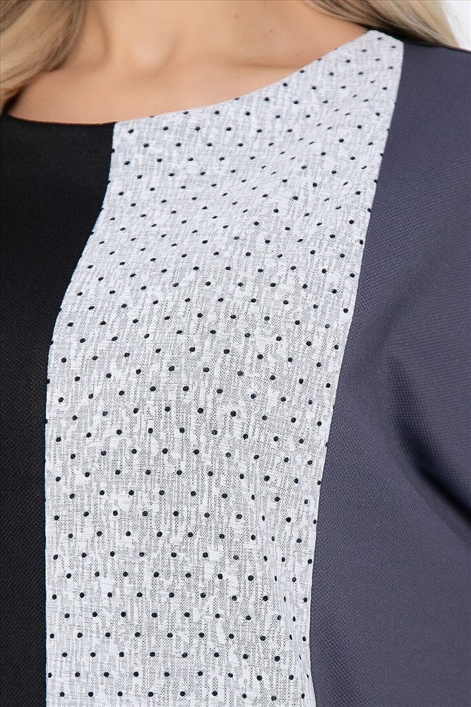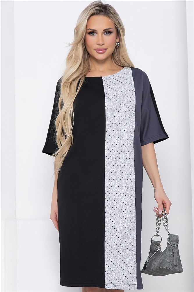 ID товара: 970726 Состав: 98% Полиэстер, 2% Эластан Сезон: Весна/Лето Длина: прикрывает колено Фасон: Свободный Рукав: До локтя Вырез горловины: Округлый Рисунок: Горох Тип карманов: В шве Декоративные элементы: Принт Основная ткань: Полиэстер Стиль: повседневный Страна бренда: Россия Страна производства: Россия Артикул: П8567. Ткань: трикотаж, шифон. Состав: 98% п/э, 2% эластан. Цвет: мультиколор (черный, серый) Вид застежки: отсутствует. Силуэт: свободный. Карманы: есть. Тип горловины: округлый. Длина изделия от плеча: 44/ 93 см, 46/ 94 см, 48/ 95 см, 50/ 96 см, 52/ 98 см, 54/ 100 см. Рост модели: 168 см. Стильное платье в сдержанном лаконичном дизайне для офиса или деловых встреч. Трикотажное платье кроя "бочонок" с принтованной шифоновой вставкой отлично скроет недостатки фигуры. Верх платья позволяет дополнить его различными украшениями. Отличный выбор для повседневного образа. В течение дня в этом платье будет комфортно и уютно. Уход за изделием: ручная стирка до 30 градусов; нельзя отбеливать; деликатный отжим; гладить при t не более 110 С; гладить с изнанки. *Допуск отклонения длины при массовом производстве 1-3 см является нормой. Комментарии к товару
