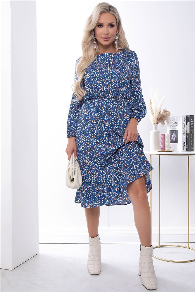 ID товара: 972323 Состав: 95% Полиэстер, 5% Эластан Сезон: Весна/Лето Длина: Ниже колена Фасон: Расклешенное Рукав: длинные Вырез горловины: Каре Рисунок: цветочный Декоративные элементы: Принт Основная ткань: Полиэстер Стиль: Романтический Страна бренда: Россия Страна производства: Россия Артикул: П8554. Ткань: плательная "Прада". Состав: 95% пэ, 5% эластан. Цвет: синий. Принт: абстракция. Вид застежки: без застёжки. Силуэт: свободный, талия на резинке. Карманы: отсутствуют. Тип горловины: квадратный. Длина изделия по спинке: 46-50/ 101 см, 52-54/ 102 см. Рост модели: 168 см. Летящее женственное платье с ярким весенним принтом украсит Ваш образ на прогулке или неформальной встрече. Такая модель платья хороша тем, что актуальна круглый год, а также выглядит женственно и элегантно. Платье свободного кроя, рукав втачной, укороченный, на резинке. Талия на резинке. Уход за изделием: ручная стирка до 30 градусов; нельзя отбеливать; деликатный отжим; гладить при t не более 110 С; гладить с изнанки. *Допуск отклонения длины при массовом производстве 1-3 см является нормой. Комментарии к товару