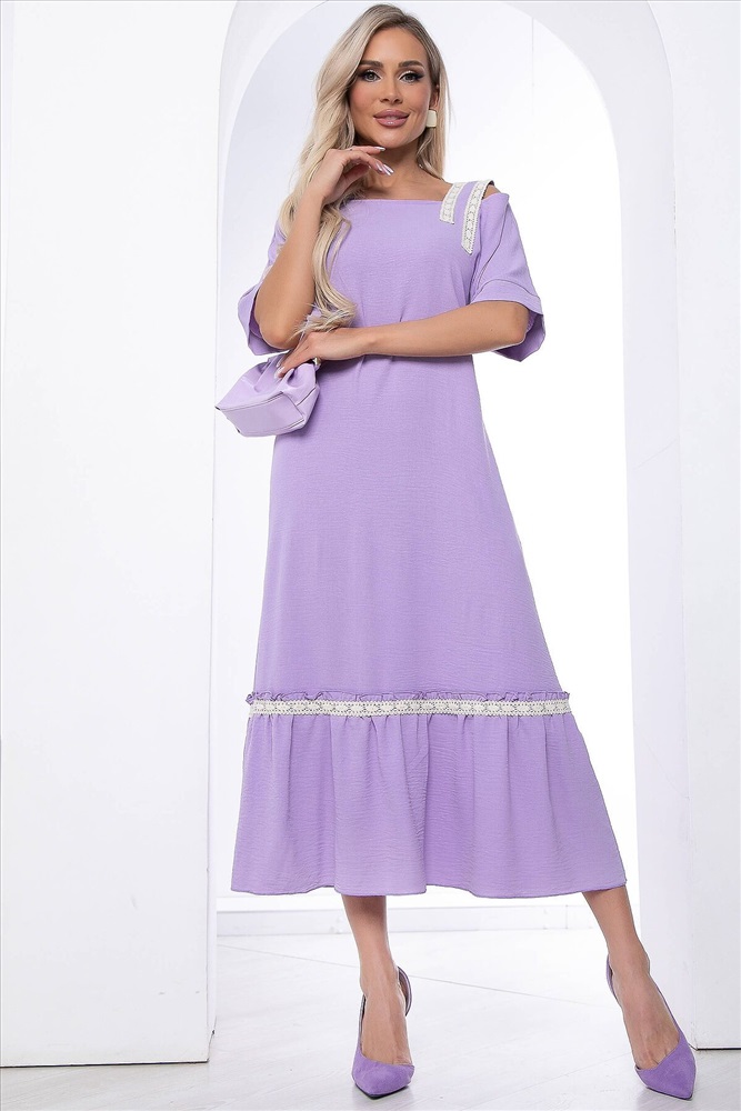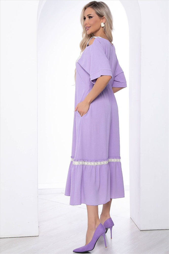 ID товара: 981745 Состав: 83% Полиэстер, 12% Вискоза, 5% Эластан Сезон: Весна/Лето Длина: Миди Фасон: Расклешенное Рукав: До локтя Вырез горловины: Фигурный вырез Тип карманов: В шве Основная ткань: Полиэстер Стиль: классический Страна бренда: Россия Страна производства: Россия Артикул: П8807. Ткань: Сингапур. Состав: 83% п/э, 12% вискоза, 5% эластан. Цвет: лиловый. Вид застежки: отсутствует. Силуэт: свободный. Карманы: есть. Тип горловины: со спущенным плечом. Длина изделия по спинке: 46/ 111 см, 48/ 111 см, 50/ 112 см, 52/ 112 см, 54/ 114 см, 56/ 114 см. Рост модели: 168 см. Легкое и воздушное платье с воланом снизу и открытым плечом добавит вашему повседневному или вечернему выходу эффектности. Уход за изделием: бережная стирка до 30 градусов; нельзя отбеливать; деликатный отжим; гладить при t не более 110 С; гладить с изнанки. *Допуск отклонения длины при массовом производстве 1-3 см является нормой. Комментарии к товару