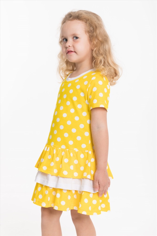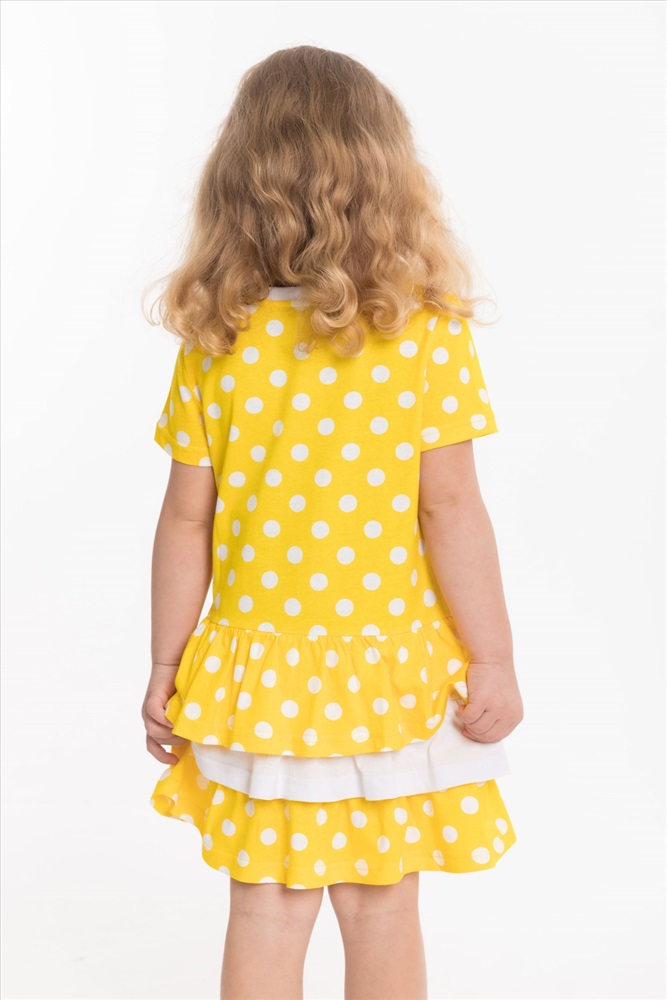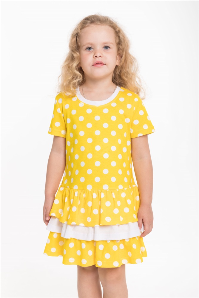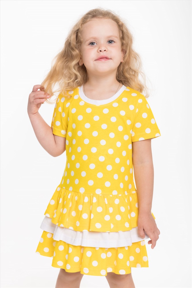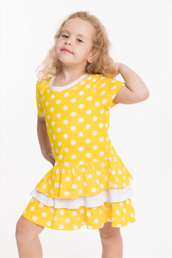 Тип длинны (для платьев): Мини Вид ткани: Кулирка Сезон: Летний Состав: Хлопок 100% Цвет Номенклатуры: разноцветный Платье выполнено из кулирки, 100% хлопок. С коротким рукавом и тремя оборками на юбке. Комментарии к товару
