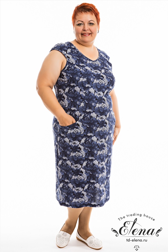 Цвет Номенклатуры: синий Платье полуприлегающего силуэта из кулирки, 100% хлопок. По бокам расположены карманы.