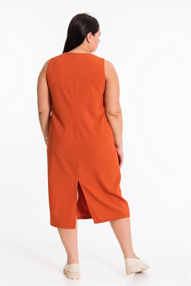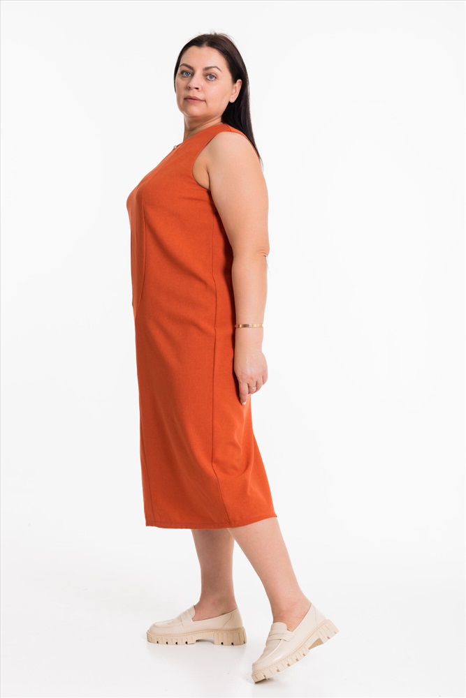 Силуэт (для платьев): Прямой Тип длинны (для платьев): До колена Вид ткани: Лен искусственный Сезон: Летний Состав: Полиэстер 100% Цвет Номенклатуры: терракотовый