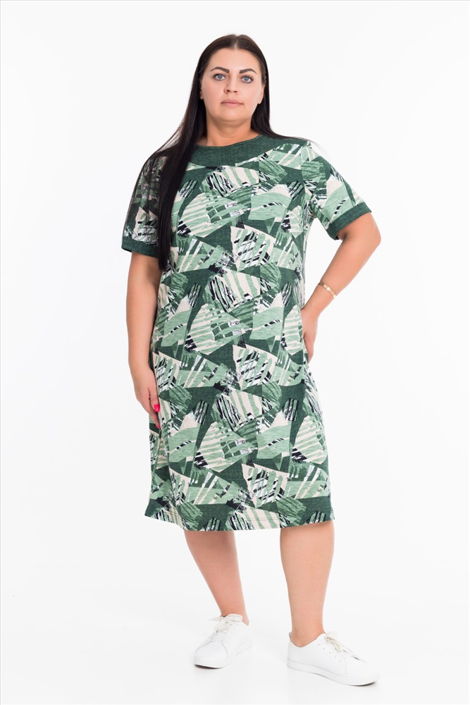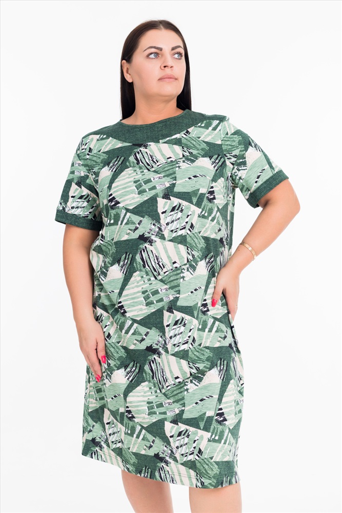 Силуэт (для платьев): Свободный Тип длинны (для платьев): Миди Вид ткани: Кулирка Сезон: Летний Состав: Хлопок 100% Цвет Номенклатуры: бежевый/зеленый