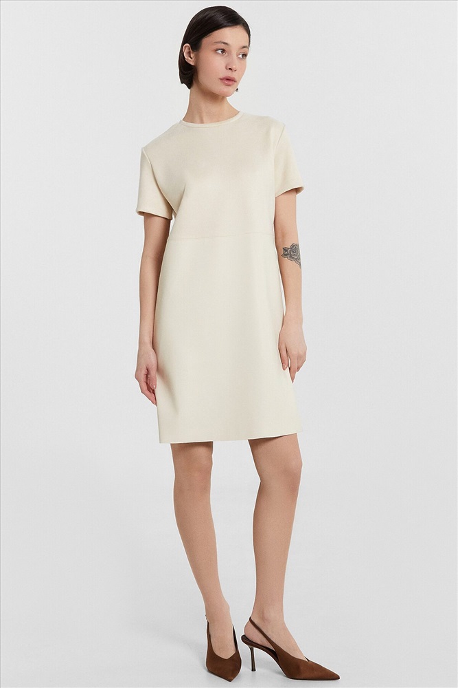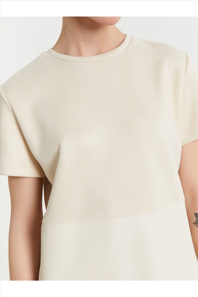 ID товара: 1095783 Состав: 63% Полиэстер; 36% Полиуретан; 1% Спандекс Сезон: Демисезон Длина: Мини Фасон: Полуприлегающий Рукав: короткие Вид застежки: Без застежки Вырез горловины: Округлый Тип карманов: Без карманов Декоративные элементы: Кожаная вставка Основная ткань: Полиэстер Стиль: повседневный Конструктивные элементы: Отрезной лиф Уход: Деликатная стирка при 30 градусах Фактура материала: Трикотажное "под замшу" +иск. кожа Страна бренда: Беларусь Страна производства: Беларусь Платье женское выполнено из трикотажного полотна "под замшу) (лиф) и трикотажного полотна "под кожу" (юбка). Платье прямого силуэта, длиной мини. Горловина круглой формы обработана обтачкой из основного полотна. Рукав втачной, короткий. Нижний срез обработан швом вподгибку. Платье отрезное по линии талии. Нижняя часть платья выполнена из трикотажного полотна "под кожу". Нижний срез платья "сырой" Комментарии к товару