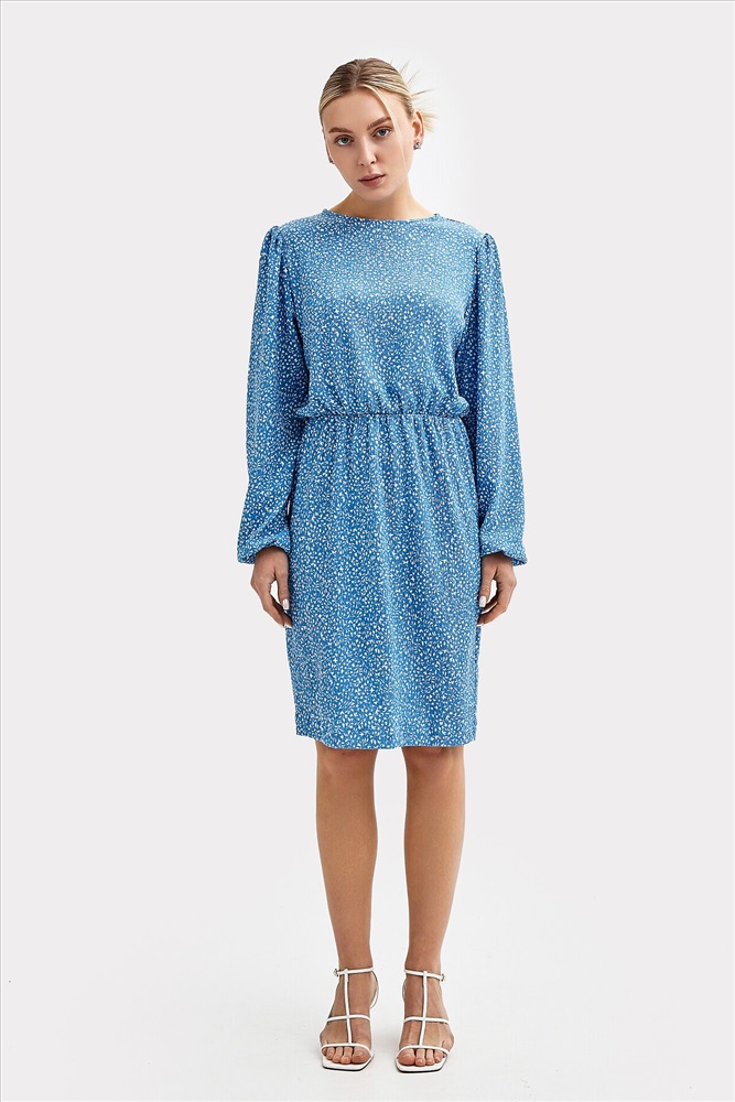 ID товара: 971400 Состав: 98% Полиэстер; 2% Эластан Сезон: Весна/Лето Рукав: длинные Вид застежки: Пуговицы Вырез горловины: Круглый Тип карманов: Без карманов Декоративные элементы: Без элементов Конструктивные элементы: Нет Покрой: полуприлегающий Уход: Деликатная стирка при 30 градусах Фактура материала: Тканое полотно Страна бренда: Беларусь Страна производства: Белоруссия Платье женское полуприлегающего силуэта из ткани рошель. Горловина круглой формы, окантована бейкой из основного полотна. Рукав втачной, по окате с небольшой сборкой. Низ рукава подгибка с эластичной тесьмой внутри, образует сборку. Платье отрезное по талии с эластичной тесьмой, по талии присборено. Платье длиной по колено. Комментарии к товару