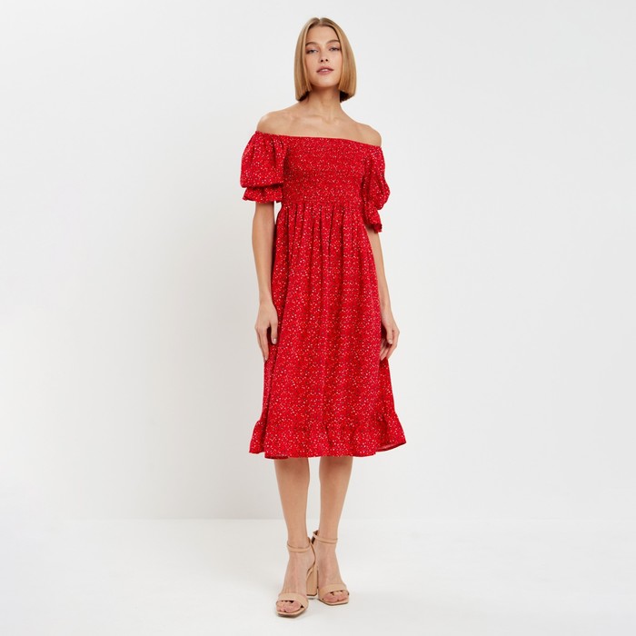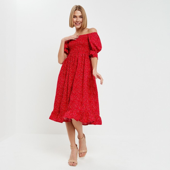 Габариты: 37 x 27 x 2,5 В боксе: 75 шт Длина рукава, см: 31 Рекомендации по уходу: Не отбеливать, Бережный режим глажки, Деликатная стирка при 30 °С Состав ткани: Хлопок, Эластан Обхват талии, см: 62 - 66 Длина изделия по спинке, см: 96 Обхват груди, см: 84 - 88 Обхват бёдер, см: 89 - 93 Страна: Кыргызстан Состав: Хлопок 75%, эластан 25% Материалы: хлопок, эластан Фасовка: по 1 шт Сертификат: ЕАС Цвет: Красный Для кого: Для женщины Назначение: Повседневная Ткань: Плательная ткань Рост, см: 170 - 175 Рост модели на фото, см: 169 Сезон: Лето Вид застёжки: Без застёжки Тематика: Цветочно-растительная Длина рукава: Короткий Тематика праздника: 8 Марта Вырез горловины: Кармен Декоративные элементы: Без элементов Покрой: Свободный Тип карманов: Без карманов Тип рукава: Реглан Длина юбки: Миди Вид юбки: Полусолнце Параметры модели на фото (ОГ-ОТ-ОБ): 77-60-88 Размер одежды: 42 Фиксированная цена: Да Комментарии к товару