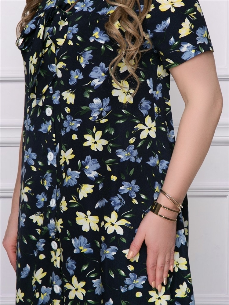 Состав: Плательная вискоза (60% вискоза, 37% пан, 3% эластан) Тип ткани: Текстиль Длина: Миди Воротник: с бантом Вырез горловины: Треугольный вырез Основной цвет ткани: Синий Отрезная талия: Есть Подклад: Есть Резинка по талии: Есть Вид принта: Цветочный Волшебное шифоновое платье в цветочном рисунке покорит ваш модный гардероб! По низу – стильный воланчик, а на горловине – на ваш выбор – классический галстук или бантик. Платье на застегивающихся пуговках. Чудо-образ! Вихрь стиля и элегантности — это именно то, что вы найдете, когда выбираете платья оптом из нашей новой коллекции. Представьте себе, как легкое шифоновое платье, нежно обсипанное цветочным принтом, нежно оборачивается вокруг вашей фигуры, создавая ощущение весны и свободы. Плательно-вискозная ткань окутывает вас мягкостью и комфортом, а стильный воланчик по низу добавляет легкой игривости вашему образу. Этот чудо-образ на пуговках становится прекрасным выбором для любого события. И если вы — владелец бизнеса, покупая платья оптом, вы получите не только выгодное предложение, но и возможность предложить вашим клиентам свежий, уникальный стиль, который будет притягивать взгляды и собирать восхищенные отзывы. Ощутите магию универсальности — платье, которое можно приспособить для любого случая. С классическим галстуком для официальных мероприятий или романтичным бантиком для прогулок на свежем воздухе, вы дарите вашим покупателям выбор, который подчеркнет их индивидуальность каждый день. Приобретая платья оптом, вы вкладываете в разнообразие и богатство выбора, позволяя клиентам почувствовать себя особенными. Плательно-вискозная ткань легко дышит и нейтрализует влагу, гарантируя комфорт и свободу движений, что делает это платье идеальным решением для повседневного или праздничного гардероба. Покупка платьев оптом — это не просто экономия, это инвестиция в будущее вашего бизнеса. Привлекательная модель, которая сочетает в себе элегантность и креативность, предлагает вам возможность удовлетворить разнообразные желания ваших клиентов. Волна модных тенденций, заключенная в одном изделии, открывает безграничные возможности для создания стильных ансамблей. Представьте, как ваши покупатели, примерив это платье, будут чувствовать себя на высоте — уверенными, стильными, готовыми покорять новые вершины. И помните, чем больше платья оптом, тем больше ваша выгодная торговая марка будет сиять на рынке, притягивая клиентов, для которых важен не только стиль, но и качество. Комментарии к товару