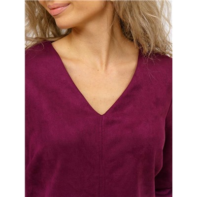 Платье прилегающего силуэта, из искуственной замши, длиной до середины бедра, с V-образной горловиной и рукавом 3/4.Платье отлично впишется в повседневный гардероб, иделально будет смотреться с массивными ботинками, либо с ботфортами.