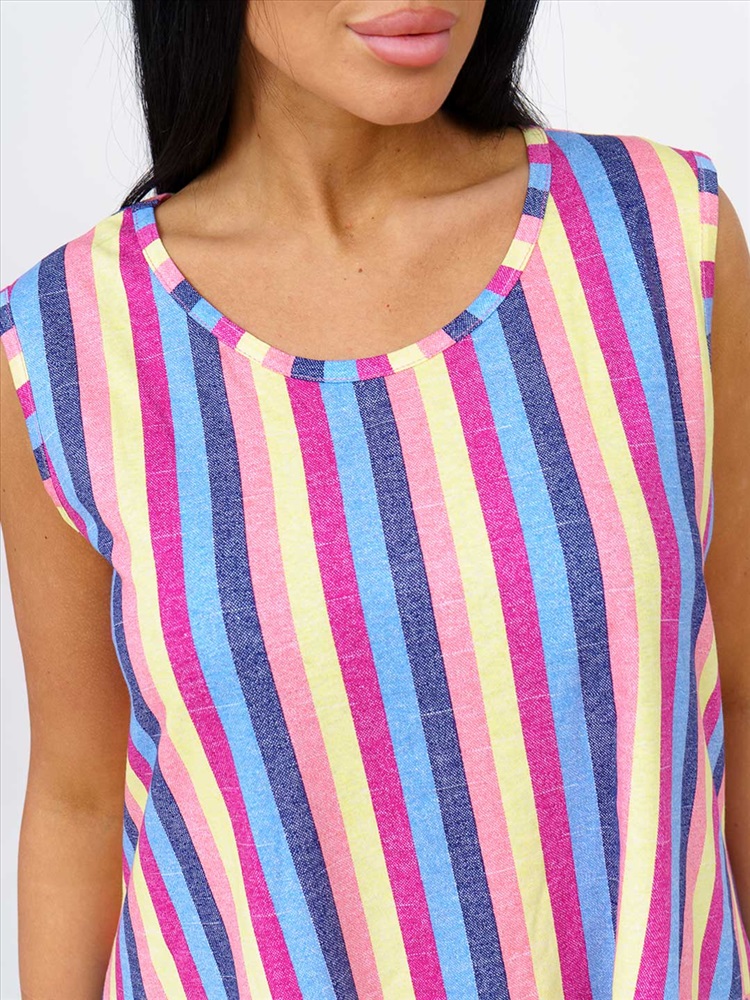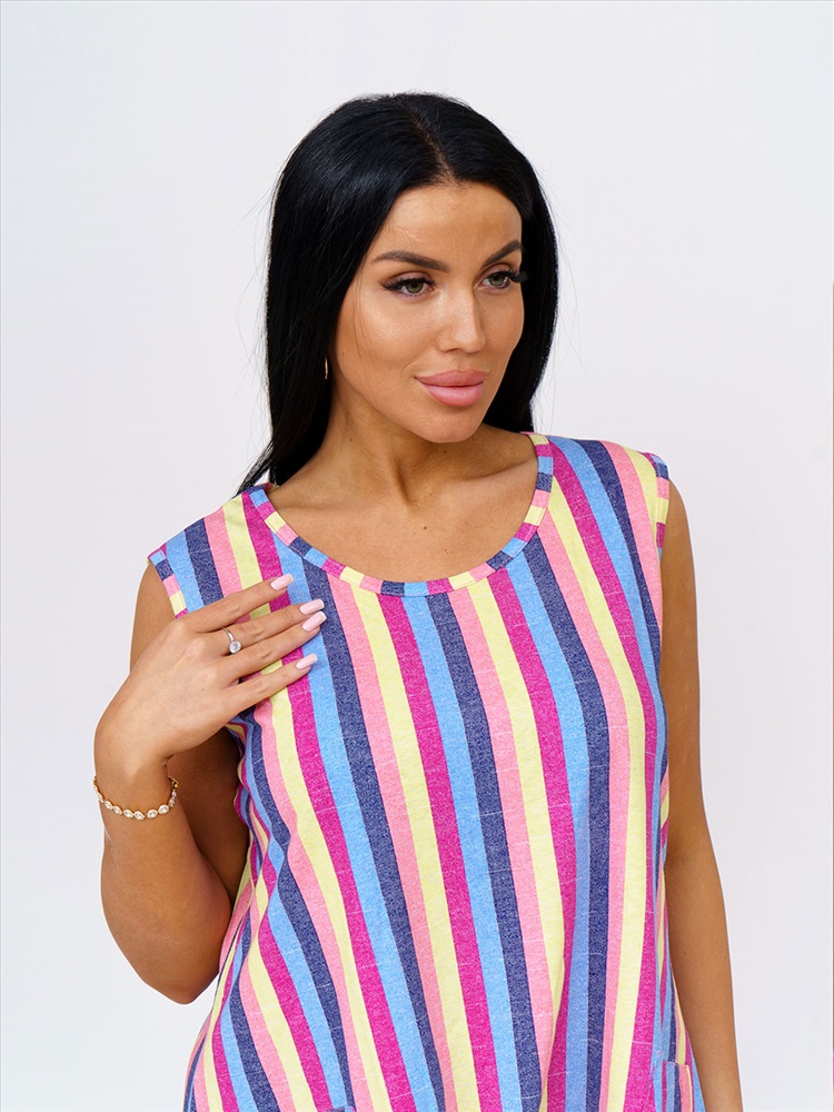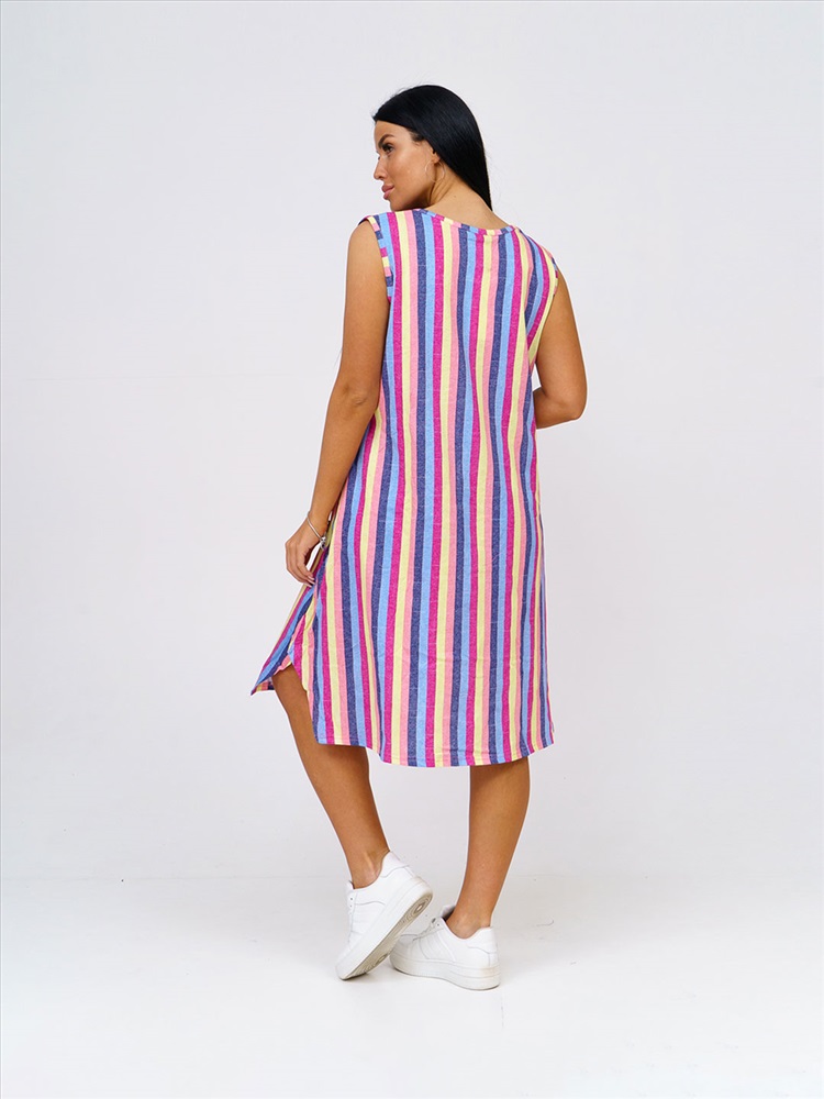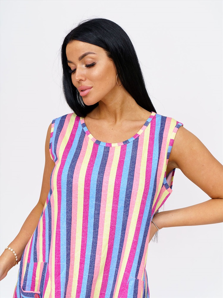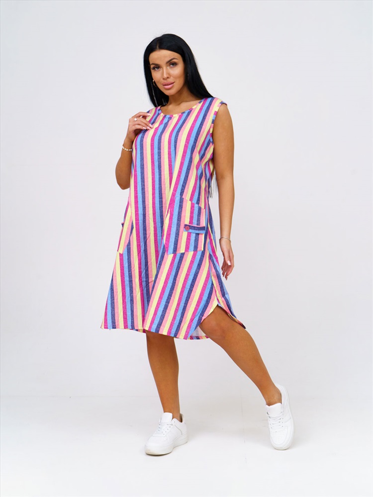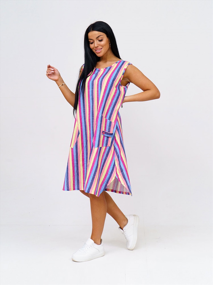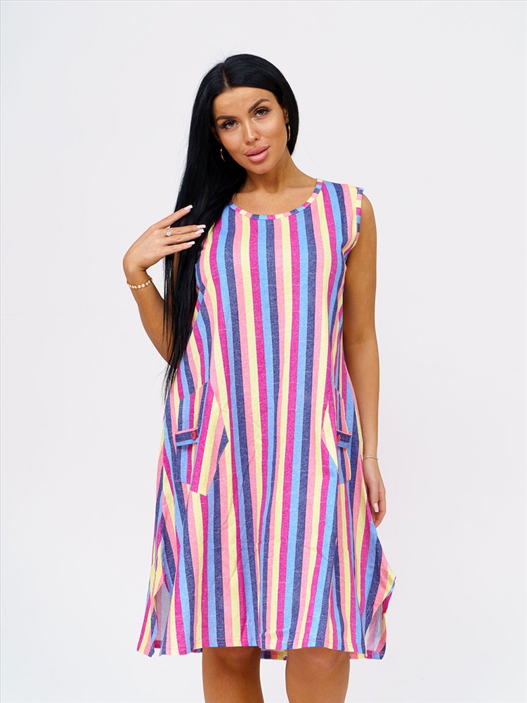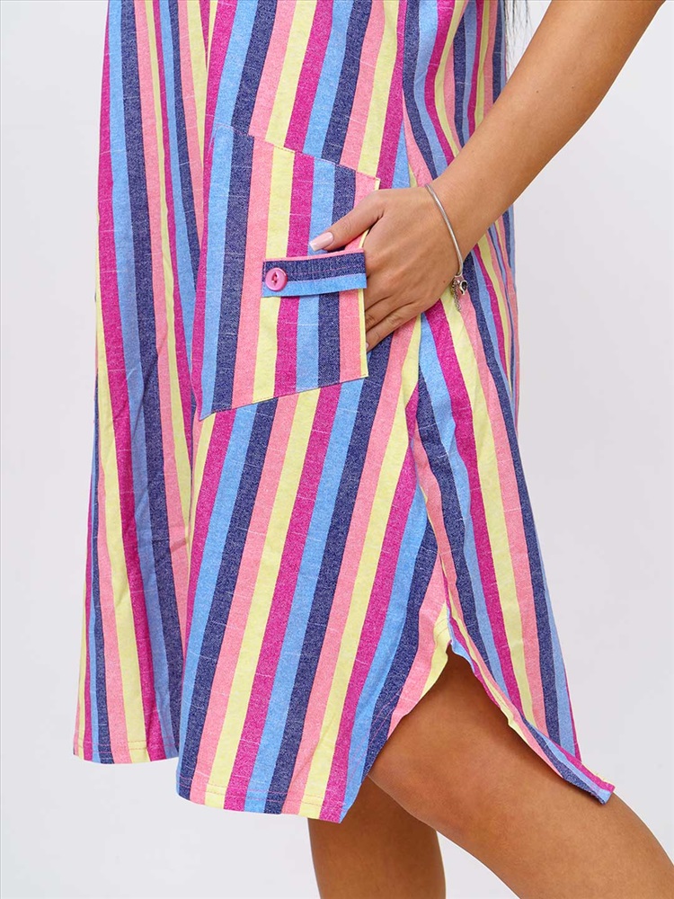 Артикул: НФ-00028625 Бренд: Текс-плюс Состав материала: 100% Хлопок Материал: Кулирка Цвет: Синий,желтый,малина Для: Женщин Вид изделия: Платья Рисунок: Полоса Дизайн: Полоса Плотность материала: 145 г/м2 Код товара: НФ-00028625 Женское трикотажное платье, длиной до уровня колена. Вырез горловины О-образный, с окантовкой по краю. В боковом шве есть карман. Комментарии к товару