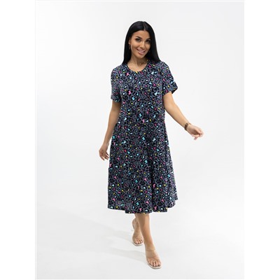 Платье женское из натурального хлопка в ярком летнем дизайне. Длина изделия чуть ниже уровня колена. Рукав - втачной, короткий. Форма выреза горловины - округлая, край с окантовкой.