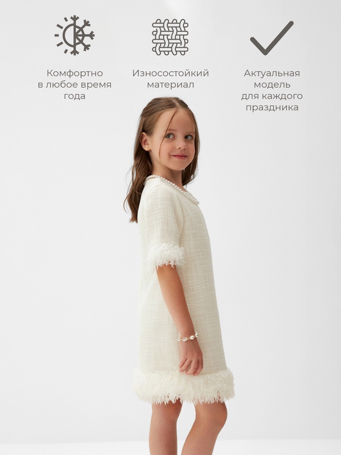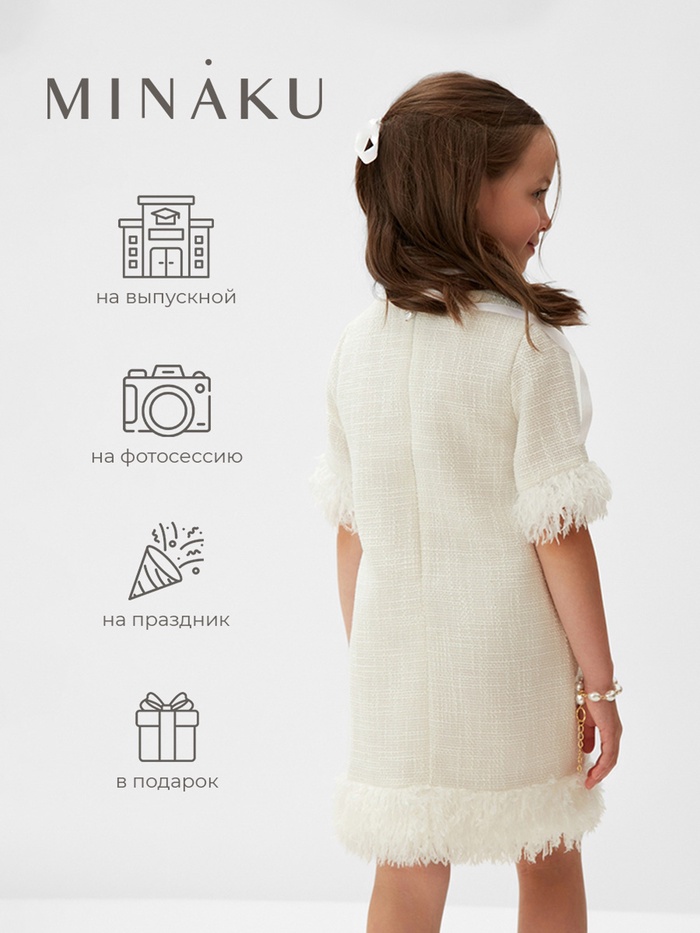 Производитель: MINAKU Габариты: 38 x 30 x 2 Назначение: Новый год, Вечерняя мода Размер: 34 Возраст, лет: 7 - 8 Рост, см: 122, 128 Сезон: Всесезонный Вид упаковки: Пакет Рекомендации по уходу: Не отбеливать, Деликатная стирка при 30 °С Состав ткани: Полиэстер, Хлопок Обхват талии, см: 73 Длина изделия по спинке, см: 61 Обхват груди, см: 72 Обхват бёдер, см: 82 Страна: Россия В боксе: 48 шт Состав: Полиэстер, хлопок Материалы: полиэстер, хлопок Фасовка: по 1 шт Сертификат: ЕАС Цвет: Белый Для кого: Для девочки Ткань: Букле Вид застёжки: Молния Тематика: Однотонная Длина рукава: 1/2 Тематика праздника: 8 Марта, Новый год Вырез горловины: Круглый Декоративные элементы: Перья Покрой: Прямой Тип карманов: Без карманов Вид юбки: Прямая