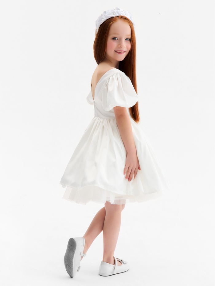 Габариты: 40 x 30 x 3 Назначение: Вечерняя мода, Новый год Размер: 28 Возраст, лет: 2 - 3 Рост, см: 92, 98 Сезон: Демисезон, Лето, Зима, Всесезонный Тематика праздника: 8 Марта, Новый год Декоративные элементы: V-образный вырез на спине, Рукав с воланом Состав ткани: Хлопок, Полиэстер Вид юбки: Солнце, Пачка Страна: Россия В боксе: 40 шт Состав: Полиэстер 100%, хлопок 100% Материалы: полиэстер, хлопок Фасовка: по 1 шт Индивидуальная упаковка: Пакет Габариты товара: 50 см × 30 см × 10 см Сертификат: ЕАС Цвет: Белый Для кого: Для девочки Ткань: Сатин Вид застёжки: Молния Тематика: Однотонная Длина рукава: Короткий Вырез горловины: Круглый Покрой: А-силуэт Тип карманов: Без карманов Тип рукава: Втачной Вид бретелей: Без бретелей Нарядное детское платье для праздников и торжеств. Пышная юбка с многослойной тканью создаёт воздушный силуэт. Верх выполнен из высококачественного полиэстера, подкладка из мягкого хлопка обеспечивает комфорт. Удобная посадка благодаря эластичному поясу. Легко надевается и снимается. Декоративные элементы – кружево и бантики – придают особый шарм. Идеально сочетается с аксессуарами. Преимущества