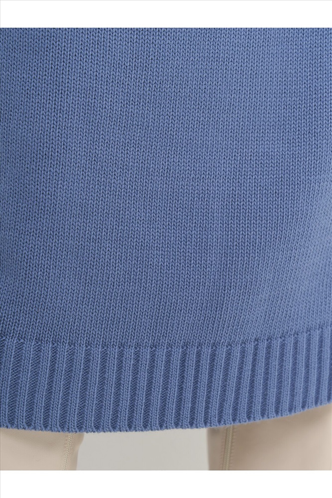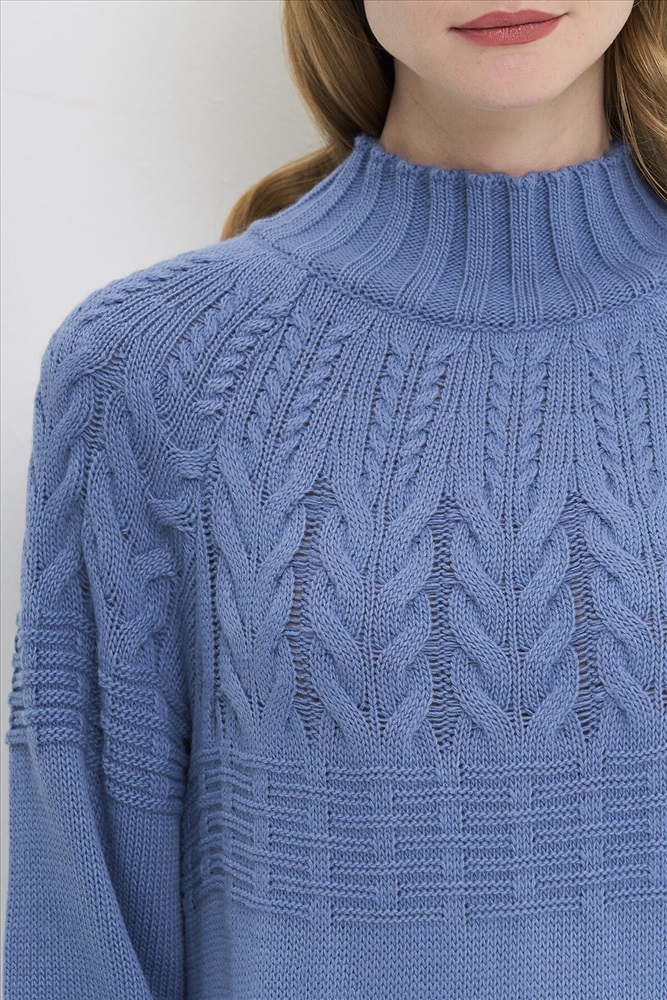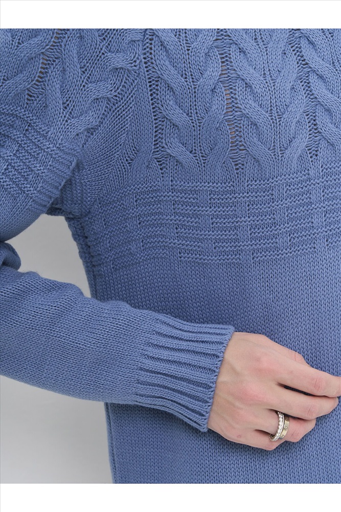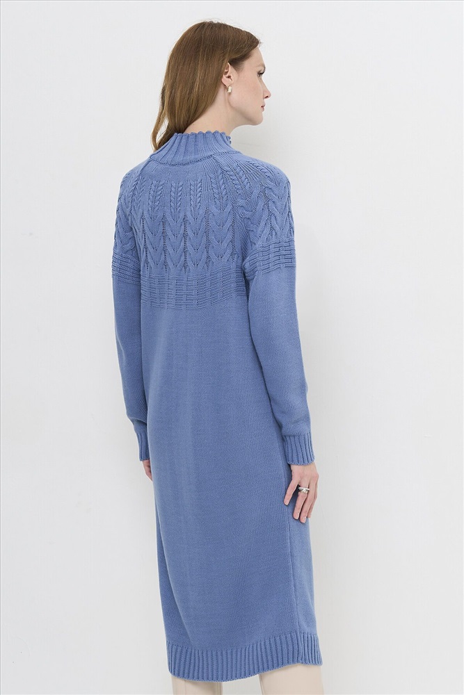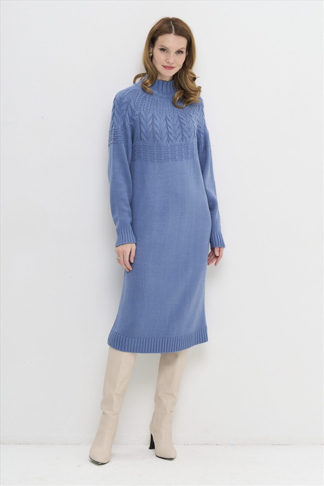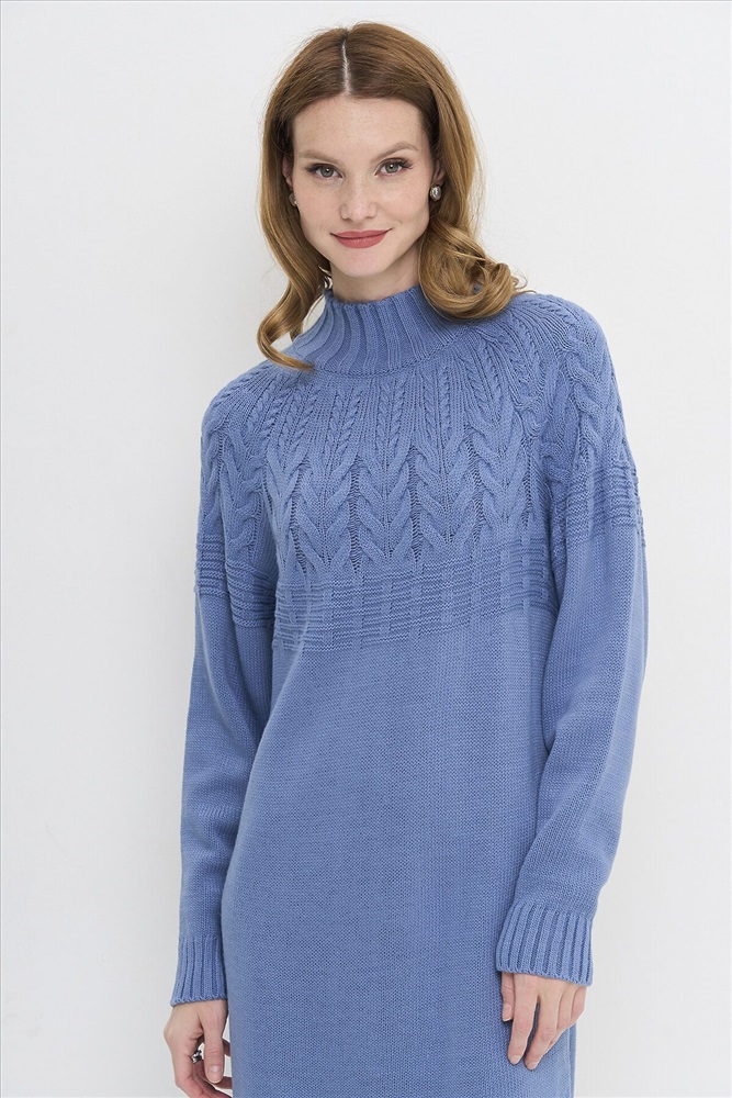 Вязаное платье с воротником-стойкой.