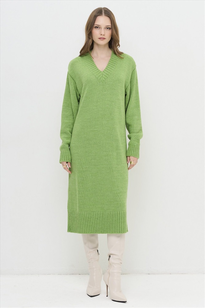 ID товара: 1129725 Состав: ПАН-70%, Шерсть-30%, СОРТ I Сезон: Осень/Зима Длина: 105 Фасон: Свободный крой Рукав: Длинные Вырез горловины: Круглый Основная ткань: ПАН Стиль: Повседневный Страна бренда: Россия Страна производства: Россия Вязаное платье с V-образным вырезом горловины. Комментарии к товару