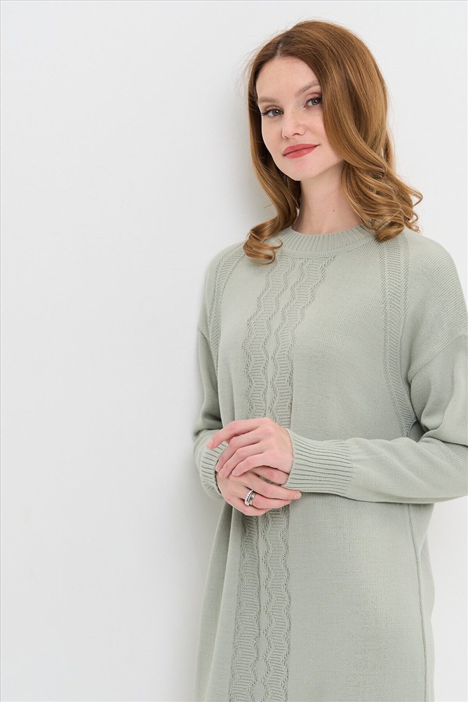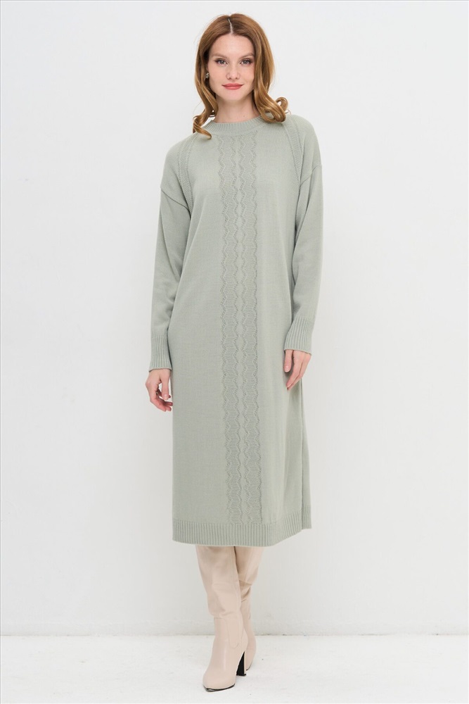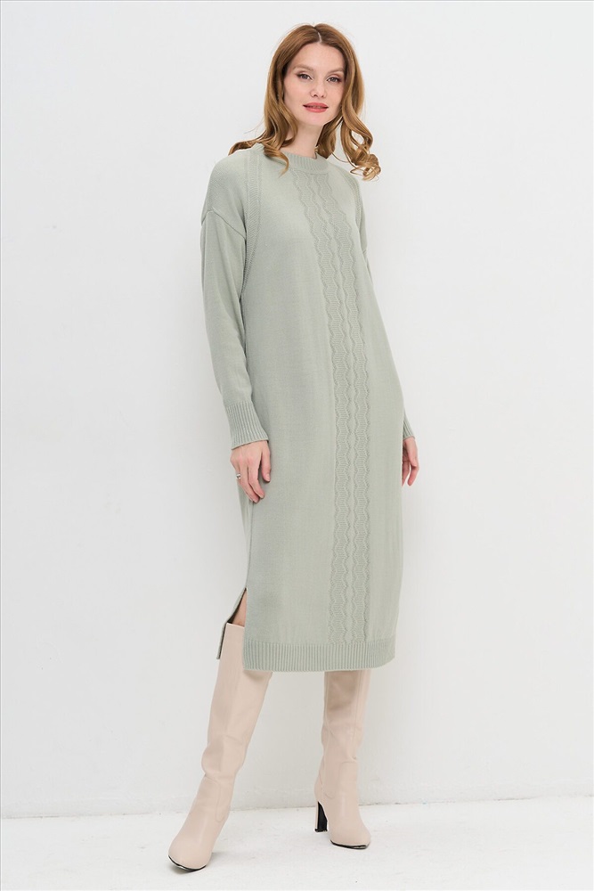 ID товара: 1131026 Состав: ПАН-70%, Шерсть-30%, СОРТ I Сезон: Осень/Зима Длина: 105 Фасон: Прямое Рукав: Длинные Вырез горловины: Округлый Основная ткань: ПАН Стиль: Повседневный Страна бренда: Россия Страна производства: Россия Вязаное платье с воротником-стойкой. Комментарии к товару