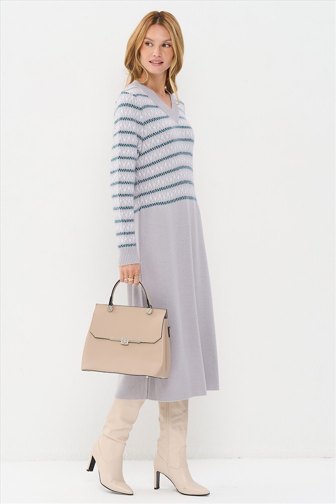 ID товара: 1219608 Состав: ПАН-70%,Шерсть-30%,СОРТ I Сезон: Осень/Зима Длина: 107 Фасон: Полуприлегающий Рукав: Длинные Вырез горловины: V-образный Рисунок: Узор Основная ткань: ПАН Стиль: Повседневный Страна бренда: Россия Страна производства: Россия Вязаное платье с V-образным вырезом горловины. Комментарии к товару