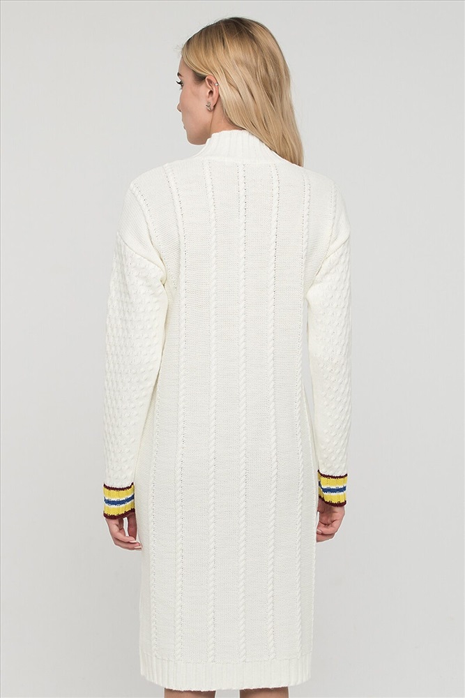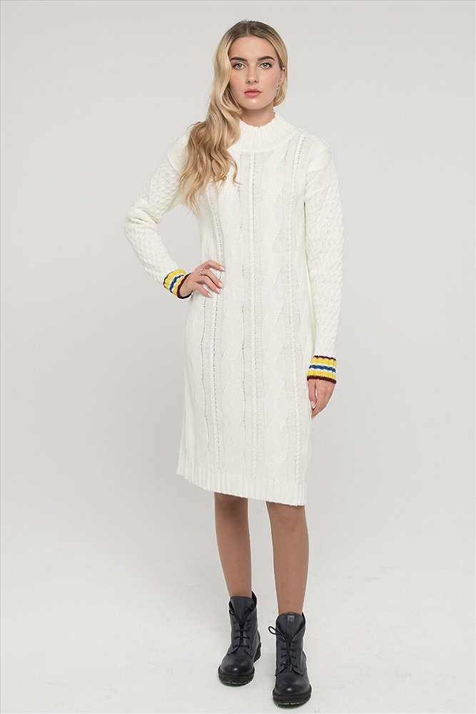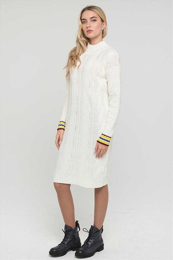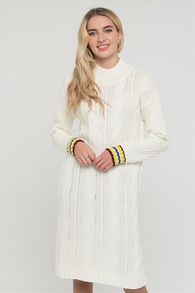 Страна производства: Россия Уютное трикотажное платье, с фактурной вязкой и контрастными манжетами.
