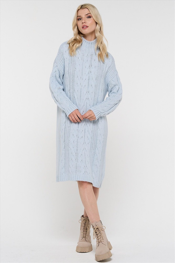 ID товара: 795347 Состав: ПАН 70%, Шерсть 30% Сезон: Осень/Зима Длина: 95 Фасон: Прямой Рукав: Длинный Вырез горловины: Стоечка Страна бренда: Россия Страна производства: Россия Вязанное платье с длинными рукавами. Комментарии к товару
