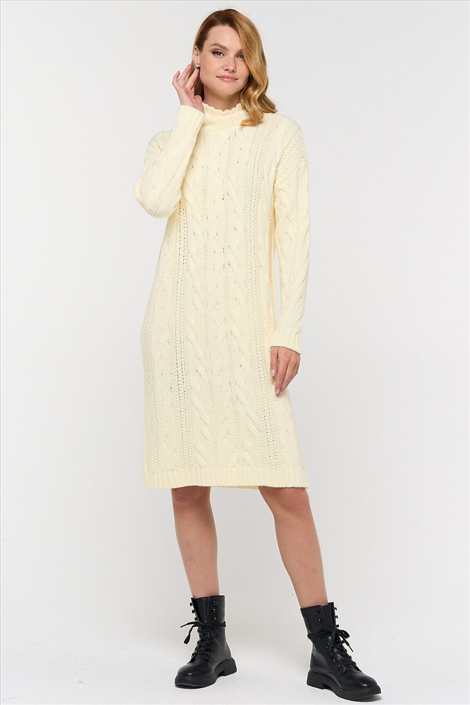 ID товара: 795349 Состав: ПАН 70%, Шерсть 30% Сезон: Осень/Зима Длина: 95 Фасон: Прямой Рукав: Длинный Вырез горловины: Стоечка Страна бренда: Россия Страна производства: Россия Вязанное платье с длинными рукавами. Комментарии к товару