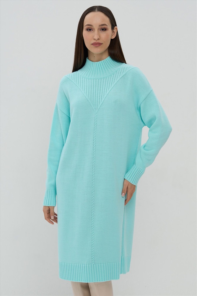 ID товара: 970110 Состав: ПАН 70%, Шерсть 30%, СОРТ I Сезон: Осень/Зима Длина: 95 Фасон: Свободный Рукав: длинные Вырез горловины: Воротник-стойка Основная ткань: ПАН Стиль: повседневный Страна бренда: Россия Страна производства: Россия Вязаное платье с воротником-стойкой. Комментарии к товару
