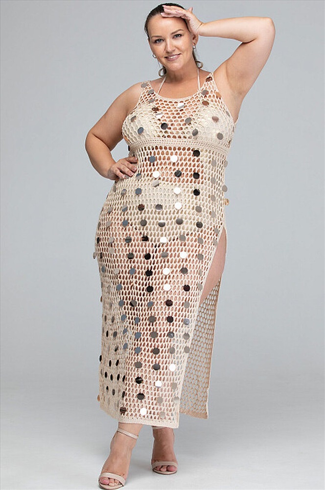 ID товара: 1072216 Состав: 100% Акрил Сезон: Весна/Лето Основная ткань: Акрил Страна бренда: Китай Страна производства: Китай Женское пляжное платье из мягкой, приятной к телу вязаной крупными сотами сетчатой ткани. Струящийся силуэт нежно обволакивает фигуру, подчеркивая её изящество и скрывая возможные нюансы. Высокий боковой разрез не стесняет движения. Эффектные пайетки переливаются на солнце, создавая роскошный образ богини пляжа. В комплекте с золотым купальником Opium SF-81 это пляжное платье смотрится особенно великолепно. Комментарии к товару