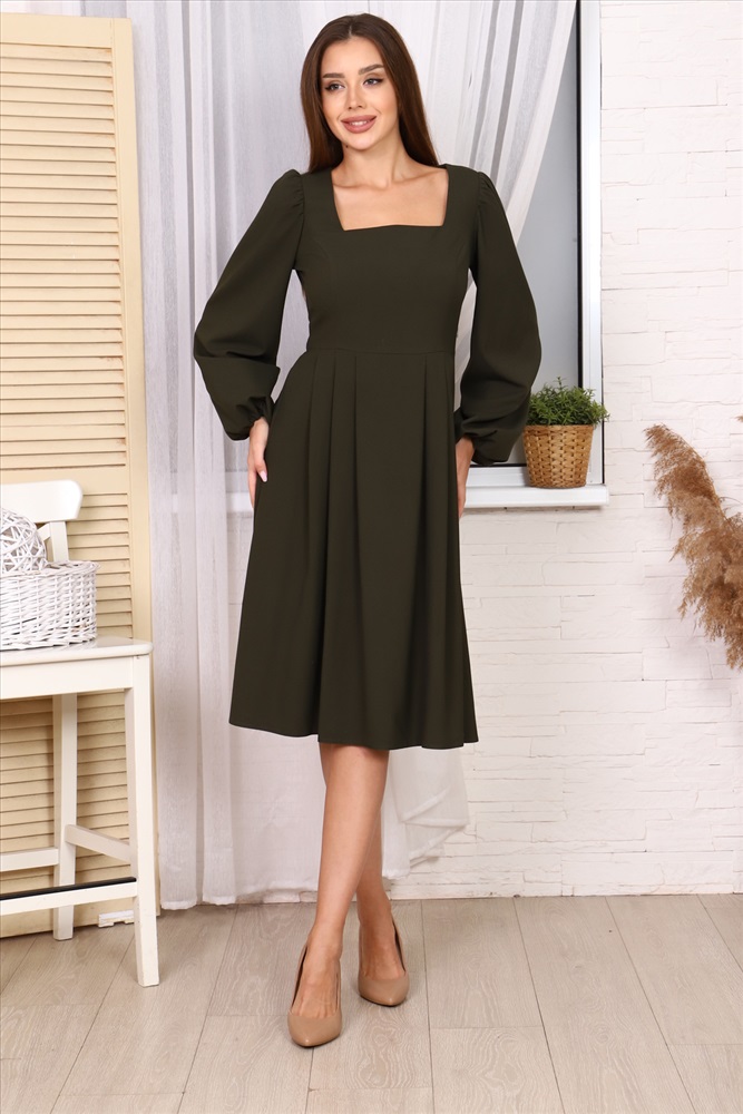 Цвет: Хаки Бренд: Натали Состав материала: вискоза 60%; полиэстер 35%; эластан 5% Материал: Полиэстер Для: Женщин Вид изделия: Платья Код товара: НФ-00063556 Романтичное платье из однотонной ткани с длинными пышными рукавами и юбкой в складку Комментарии к товару