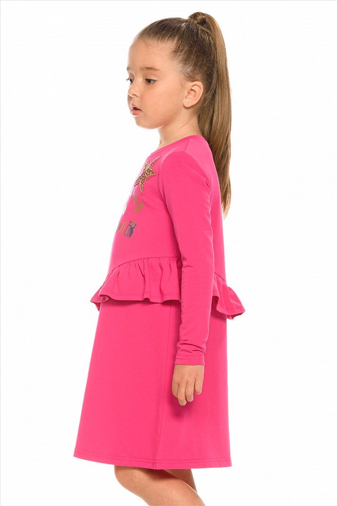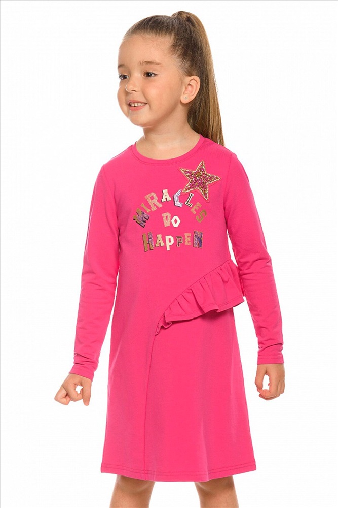 ID товара: 685626 Состав: 75% Хлопок, 20% Полиэстер, 5% Эластан Сезон: Осень/Зима Длина: До колена Фасон: Повседневный Рукав: Длинные Вырез горловины: Округлый Рисунок: Надпись Декоративные элементы: Печатный принт Основная ткань: Хлопок Стиль: Повседневный Страна бренда: Россия Страна производства: Китай Платье для девочек из футера А силуэта. Аккуратный втачной рукав, небольшая горловина. Фишка декоративный асимметричный рельеф необычной округлой формы по переду и по спинке до низа изделия. В рельеф вставлен волан. Rubber принт с золотым металликом и глиттером. Надпись Чудеса случаются. Вуаля. Комментарии к товару