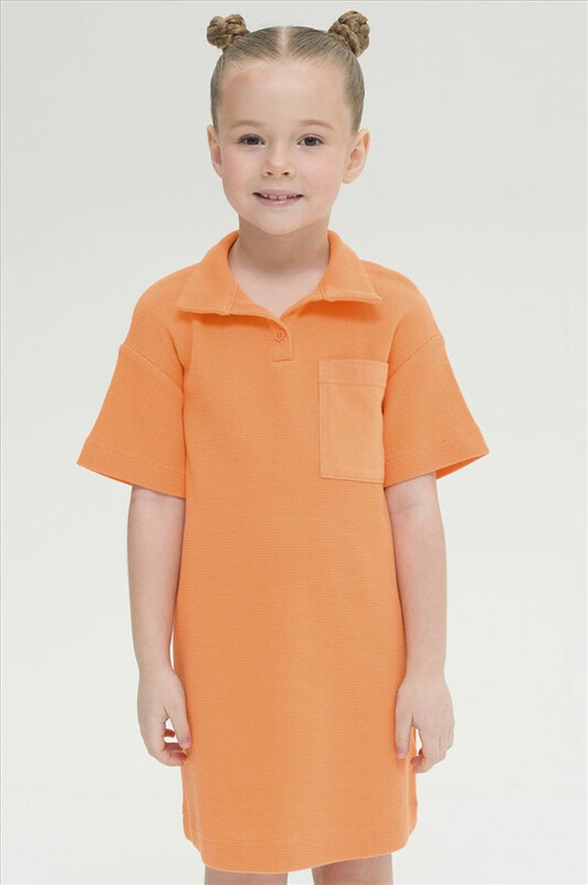 ID товара: 855670 Состав: 95% Хлопок 5% Эластан Сезон: Весна/Лето Длина: Средняя Фасон: Трапеция Рукав: Короткий Вид застежки: Пуговицы Вырез горловины: Отложной воротник Тип карманов: Накладные Основная ткань: Хлопок Стиль: Повседневный Страна бренда: Россия Страна производства: Россия Платье для стильных девочек. Приятный на ощупь, с большим содержанием хлопка в составе, гигроскопичный и простой в уходе вафельный трикотаж. Модель свободного А -образного силуэта с коротким рукавом рубашечного типа, отложным воротником и короткой планкой на одной на пуговице делают платье стильным и отражают актуальный тренд сезона платье под футболку-поло. На груди накладной карман - можно положить мелочь или ключи. Такой фасон не сковывает движения ребенка, благодаря своей простоте и универсальности будет отличным решением для путешествий, прогулок, спорта. А благодаря яркому оранжевому цвету ребёнок не потеряется в толпе. Комментарии к товару