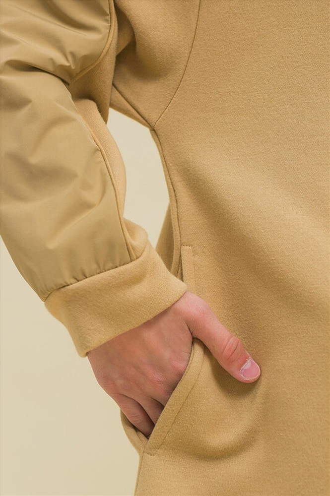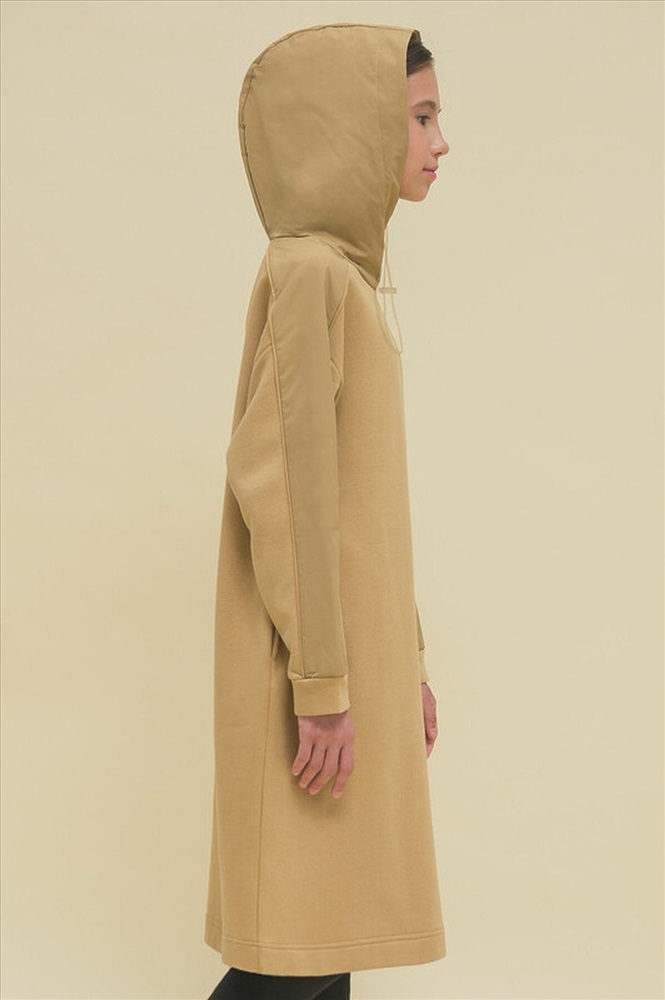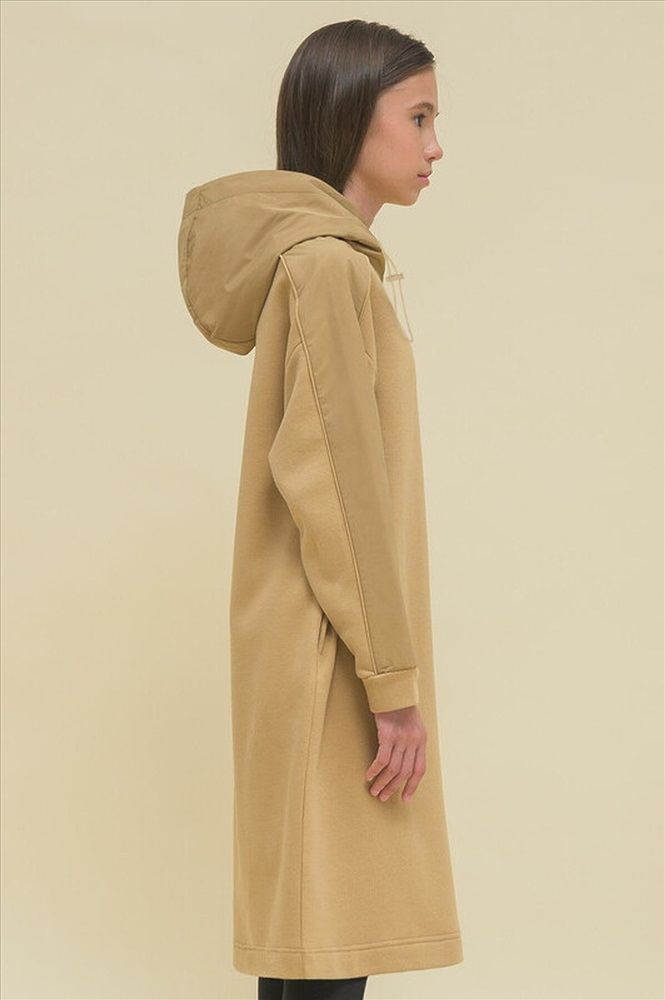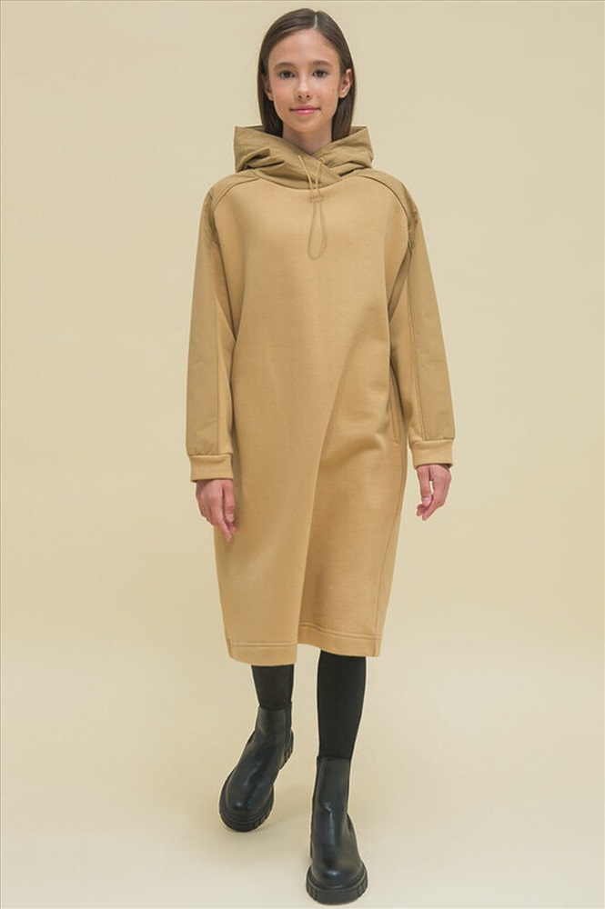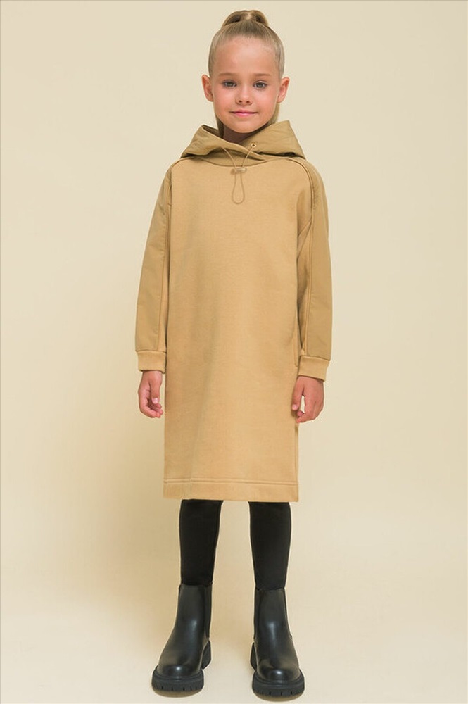 Страна производства: Россия Детское платье-худи длиной ниже колена для девочки. Худи с капюшоном выполнено из футера с начёсом и дополнено элементами из гладкой курточной ткани. Сочетание материалов разной фактуры в одном изделии — один из наиболее модных трендов сезона. Капюшон и вставки на рукавах из курточной ткани — практичное решение, ребенок не промокнет под дождём. Вдоль вставок кант из мягкой хлопковой ткани. Худи для девочек актуального оверсайз-силуэта со спущенным плечом подарит ребёнку свободу движений и ощущения комфорта и уюта. На капюшоне предусмотрена регулировка эластичным шнуром со стопперами. Двойной капюшон - швы закрыты, смотрится аккуратно. Манжеты рукавов из основной ткани. В боковых швах карманы — удобно пользоваться. Худи однотонное, без принта. Неприхотливо в уходе. В составе основной ткани преобладает качественный хлопок — платье мягкое и отлично попускает воздух, позволяя коже ребёнка дышать. Благодаря полиэстеру толстовка легко стирается и быстро сохнет, сохраняет отличную форму надолго. Вставки также выполнены из практичного полиэстера - актуальный тренд. Платье представлено в универсальном бежевом цвете. Размерный ряд: 3 (98): 4 (104): 5 (110): 6 (116): 7 (122): 8 (128): 9 (134): 10 (140): 11 (146). Платье-худи утеплённое идеально для девочек дошкольного и младшего школьного возраста, а также девочек-подростков. Его можно носить в детский сад, на прогулки, на отдых, дома. Худи с капюшоном подходит для круглогодичной носки: прохладным летом, осенью и весной (демисезон), зимой. Стильный и практичный подарок дочери, внучке или сестре на День рождения и любой другой праздник.