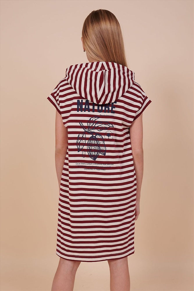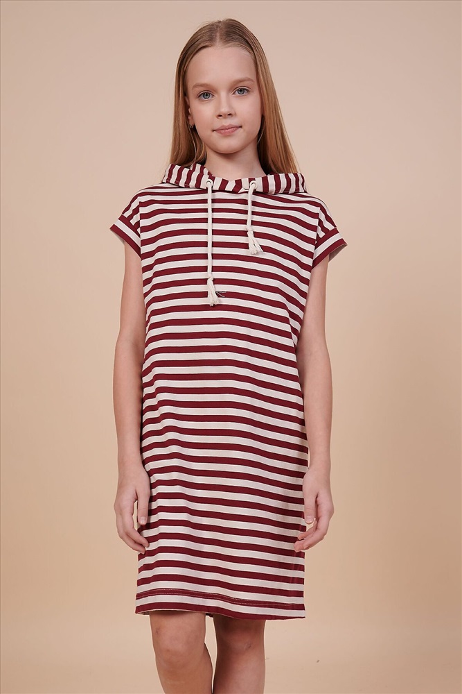 ID товара: 964582 Состав: 100% Хлопок Сезон: Весна/Лето Длина: До колена Фасон: Прямое Рукав: короткие Вырез горловины: Капюшон Рисунок: Полоски Декоративные элементы: Принт Основная ткань: Хлопок Стиль: повседневный Страна бренда: Россия Страна производства: Китай Детское платье худи в полоску для девочки. Платье в спортивном стиле А-силуэта подойдёт для любого типа фигуры. Это идеальный вариант для летнего отдыха — благодаря капюшону нет необходимости в панаме, голову ребёнка не напечёт солнцем. Капюшон двухшовный, красиво и анатомически правильно садится по голове. Есть возможность регулировки капюшона шнуром. Платье-тельняшка — супертренд сезона! Платье умеренного объёма со спущенным плечом подарит ребёнку комфорт и свободу движения. Проймы с широкими притачными манжетами, они отлично держат форму, платье выглядит аккуратно и стильно. В боковых швах имеются карманы — удобно пользоваться. Платье в полоску (полоска вытканная, не принт) украшено красивым принтом в ботаническом стиле по спинке. На принте изображены какао-бобы. Надписи переводятся: "природа", "шоколадное дерево", "вечнозелёное дерево", "какао-бобы содержат вещества, которые стимулируют выработку эндорфинов и серотонина (гормоны счастья)". Принт мягкий и стойкий, не боится частых стирок. За платьем легко ухаживать. В составе ткани 100% высококачественного хлопка — платье мягкое и дышащее. Изделие представлено в двух актуальных вариантах цвета: тёмно-синем и бордовом. Размерная линейка: 1 (86): 2 (92): 3 (98): 4 (104): 5 (110): 6 (116): 7 (122): 8 (128): 9 (134): 10 (140): 11 (146). Платье-худи укороченное идеально для девочек дошкольного и младшего школьного возраста, а также девочек-подростков. Подходит для детского сада, прогулок, отдыха, дома. Платье можно носить летом, а также весной и осенью (демисезон), зимой в качестве домашней одежды. Модное платье — стильный и практичный подарок дочери, внучке или сестре на любой праздник. Выбирайте нужный размер по таблице размеров на фото. Цвет товара на экране вашего устройства может отличаться от цвета изделия вживую. Комментарии к товару
