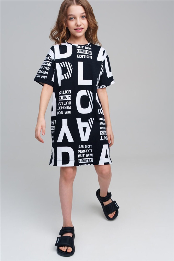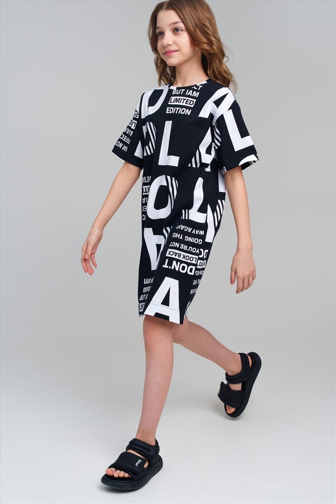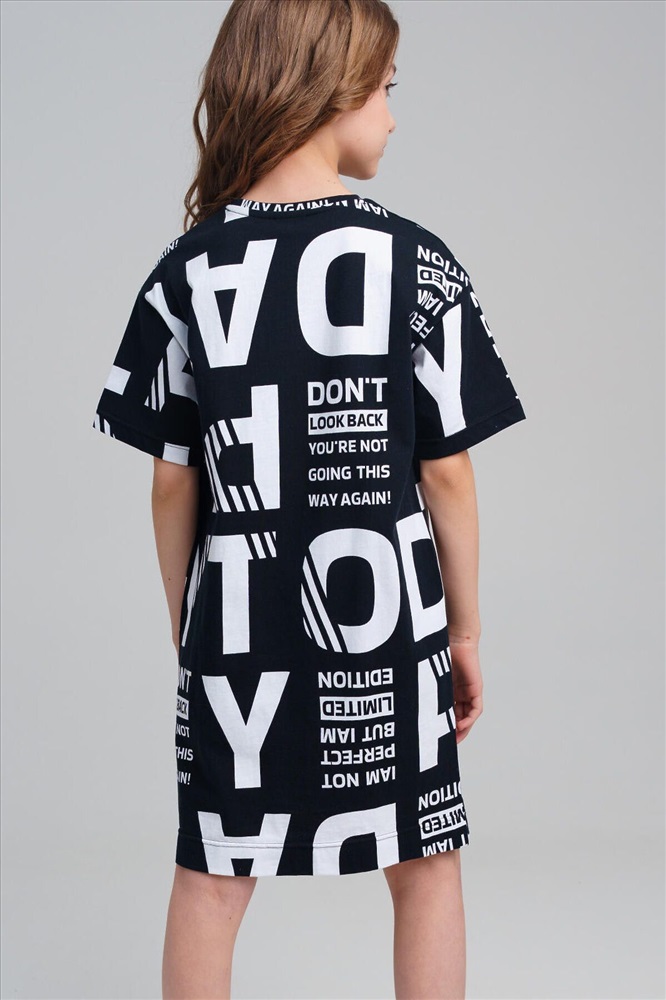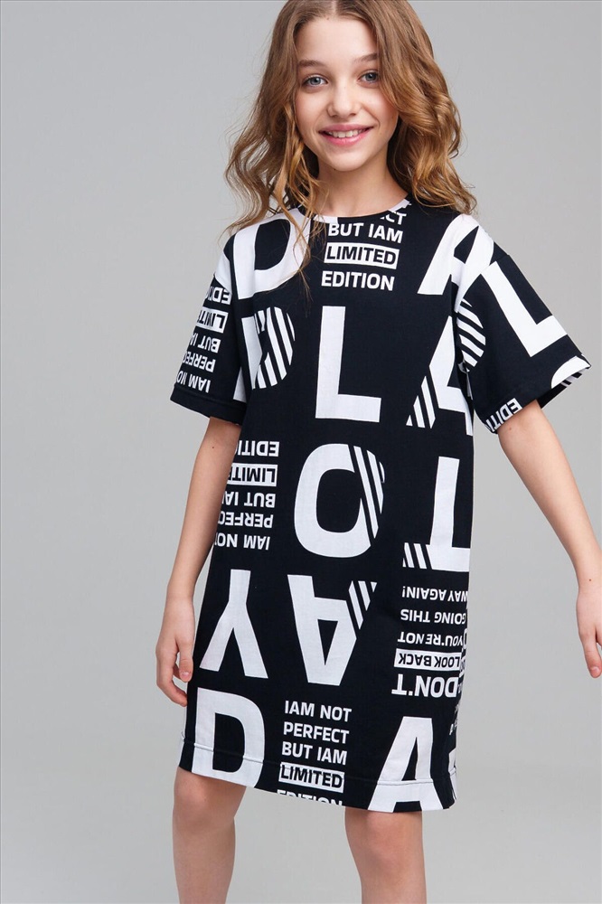 ID товара: 1088701 Состав: 100% Хлопок Сезон: Весна/Лето Длина: Средняя Фасон: Прямое Рукав: короткие Вырез горловины: Округлый Рисунок: Надпись Декоративные элементы: Принт Основная ткань: Хлопок Стиль: повседневный Страна бренда: Германия Страна производства: Китай Платье для девочки подростка. Оверсайз платье из качественного и приятного на ощупь трикотажа джерси. Платье с высоким содержанием хлопка 100%. Модель выполнена из качественного и приятного на ощупь трикотажа. Комментарии к товару