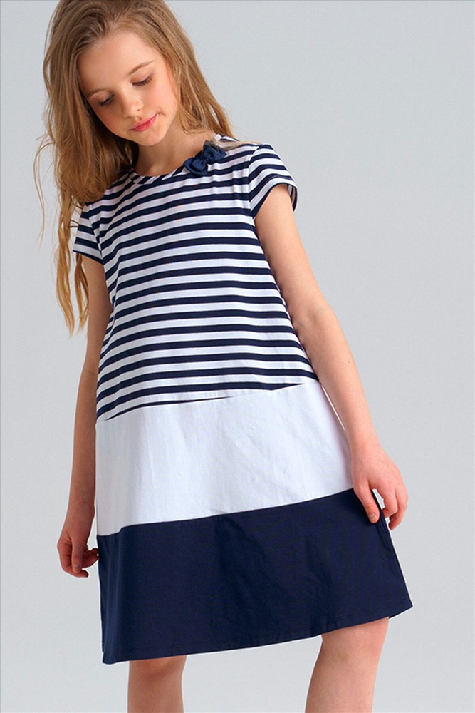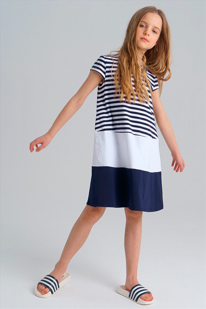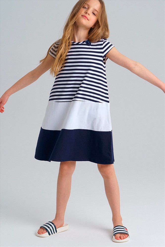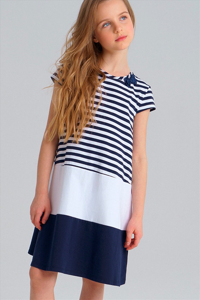 ID товара: 302919 Состав: 95% Хлопок, 5% Эластан Сезон: Весна/Лето Длина: До колена Фасон: Трапеция Рукав: Короткий Вырез горловины: Круглый Рисунок: Полоска Основная ткань: Хлопок Стиль: Повседневный Страна бренда: Германия Страна производства: Россия Платье трикотажное, высокое содержание хлопка 95%, благодаря наличию эластана в составе ткани изделие проще в уходе и держит форму бантики по рукавам. Комментарии к товару
