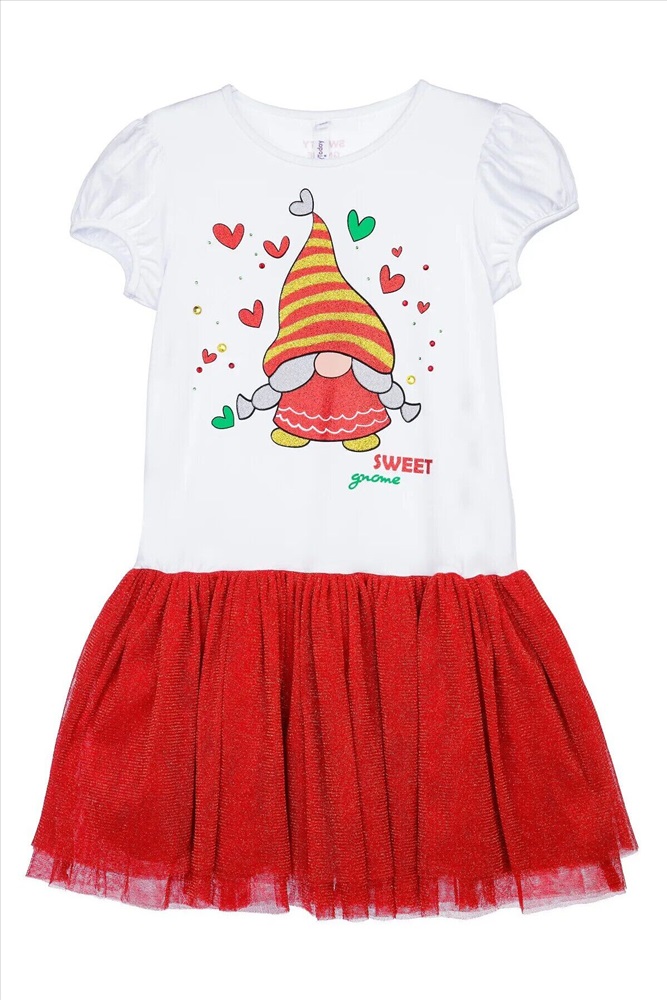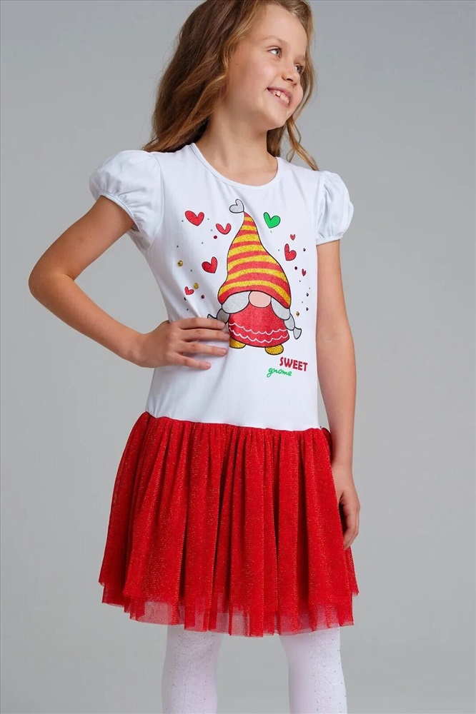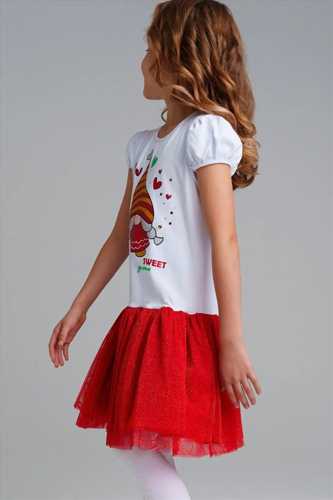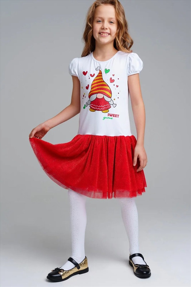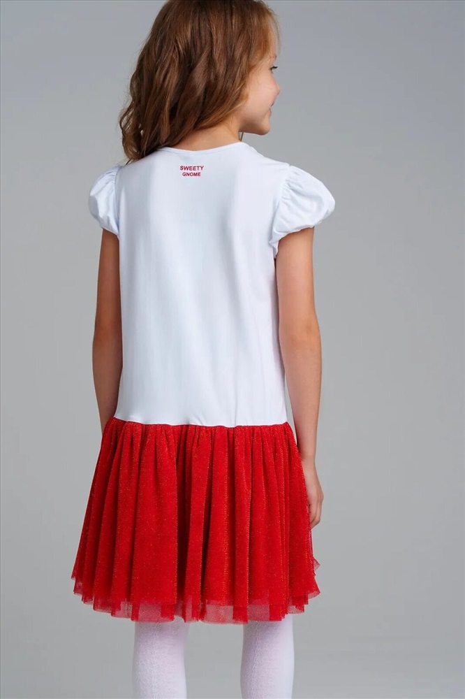 Платье трикотажное с юбкой из мягкой сетки. Верх платья из трикотажа с высоким содержанием хлопка 95%. Благодаря наличию 5% эластана в составе ткани изделие держит форму.