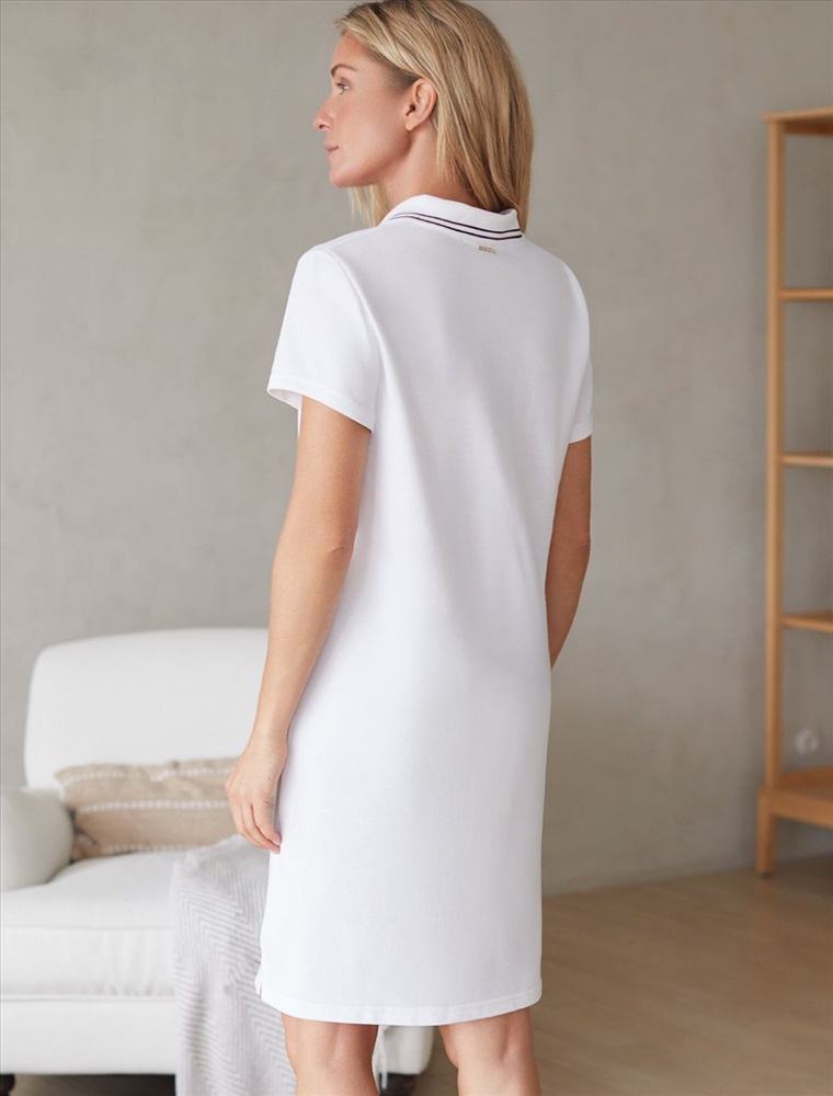 Состав: 92%Хлопок 8%ПУ Стильный и комфортный вариант платья из фактурного трикотажа на лето! Легкий хлопковый материал приятен к телу и отлично пропускает воздух. Классический покрой с коротким рукавом и аккуратным воротником подходит для прогулок и отдыха. Минималистичный дизайн идеально подчеркивает силуэт, обеспечивая при этом непревзойдённый комфорт. Универсальная модель создана для тех, кто ценит лаконичность и удобство в повседневной жизни.