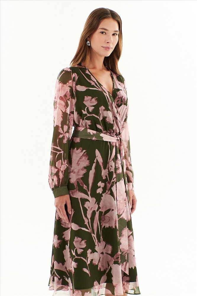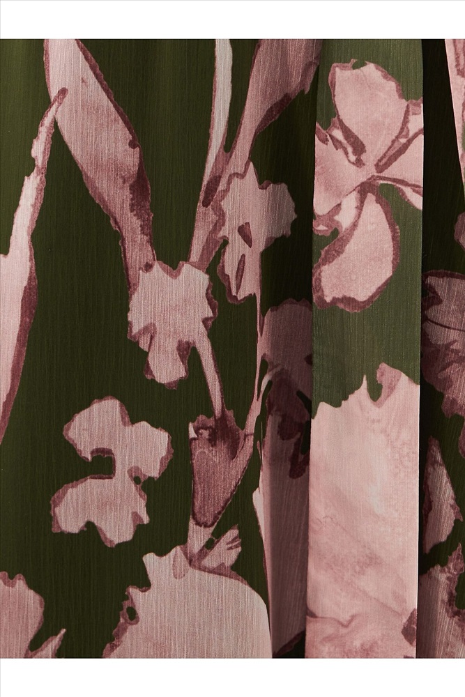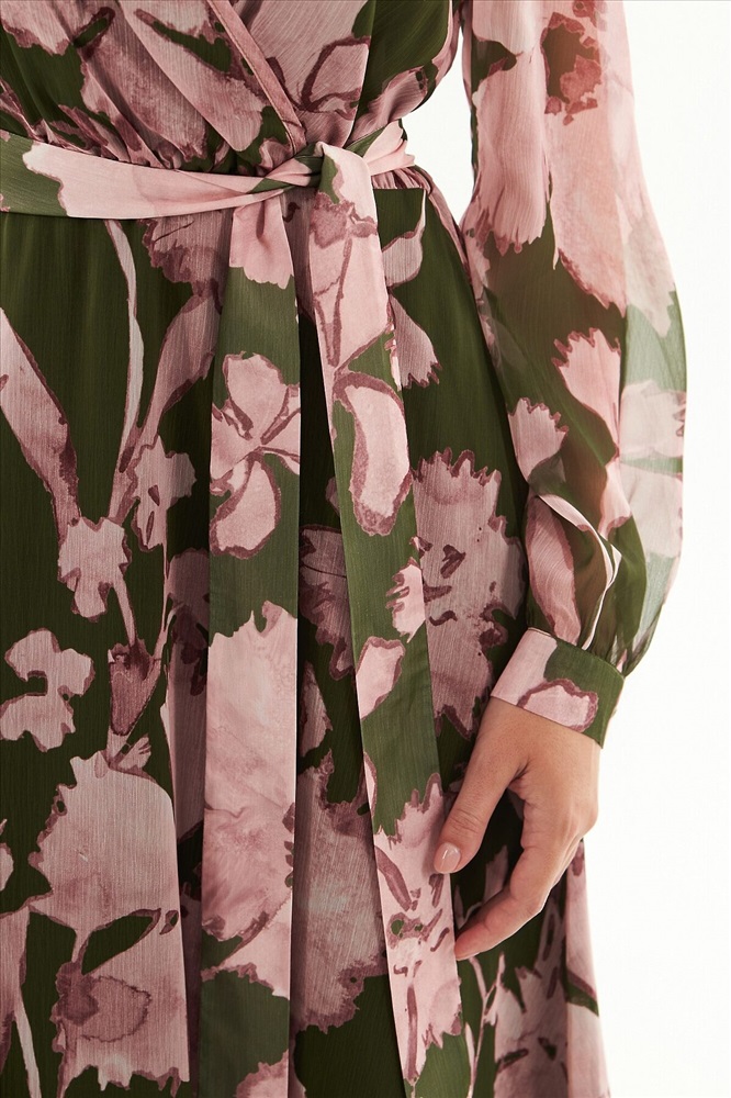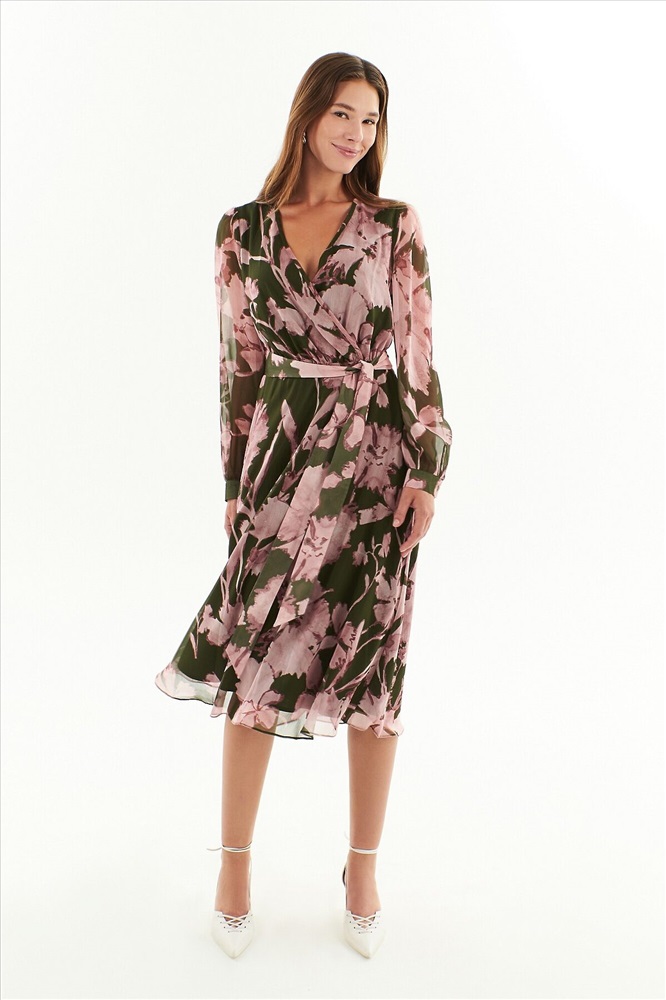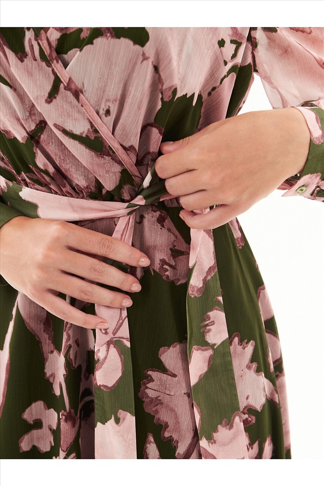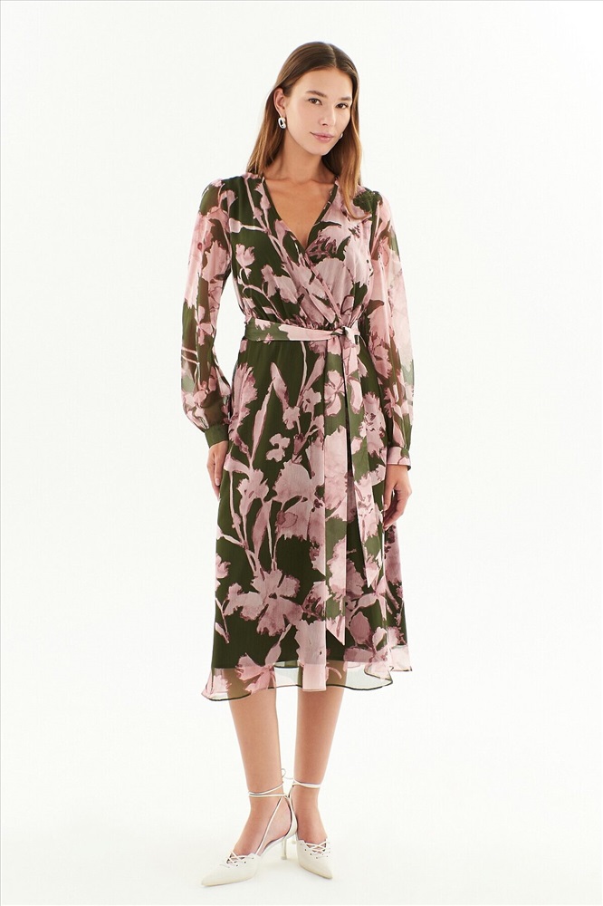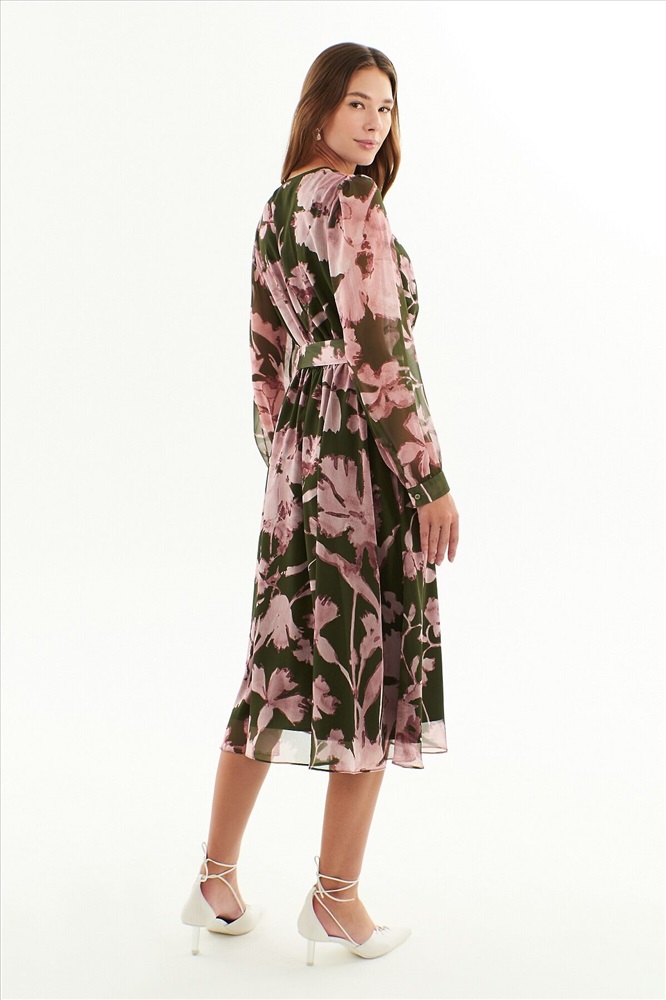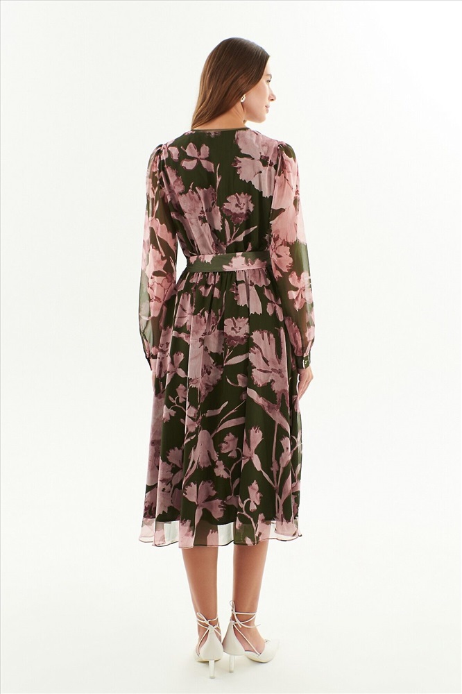 ID товара: 1088337 Состав: Основная ткань- Полиэстер 80%, Вискоза 20%; Подкладка- Полиэстер 100% Сезон: Демисезон Длина: Миди Фасон: Свободный Рукав: длинные Вырез горловины: V-образный Рисунок: цветочный Декоративные элементы: Пояс Основная ткань: Полиэстер Стиль: классический Страна бренда: Россия Страна производства: Россия Свободное платье из принтованного шифона с рукавом регланом и круглым вырезом. По горловине сборка. Рукав на манжете со сборкой. Платье на подкладке с поясом из основной ткани. Комментарии к товару