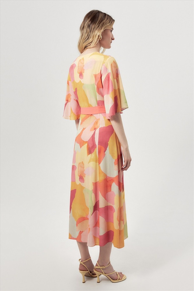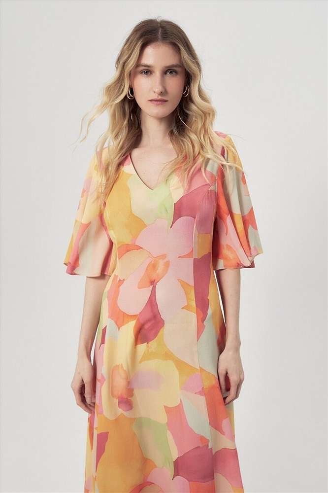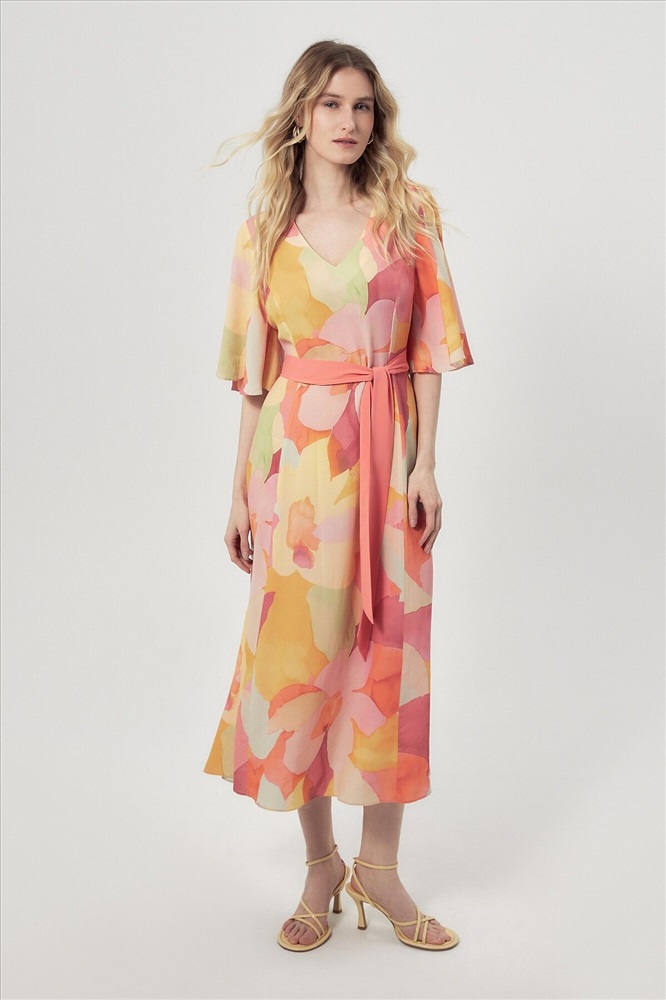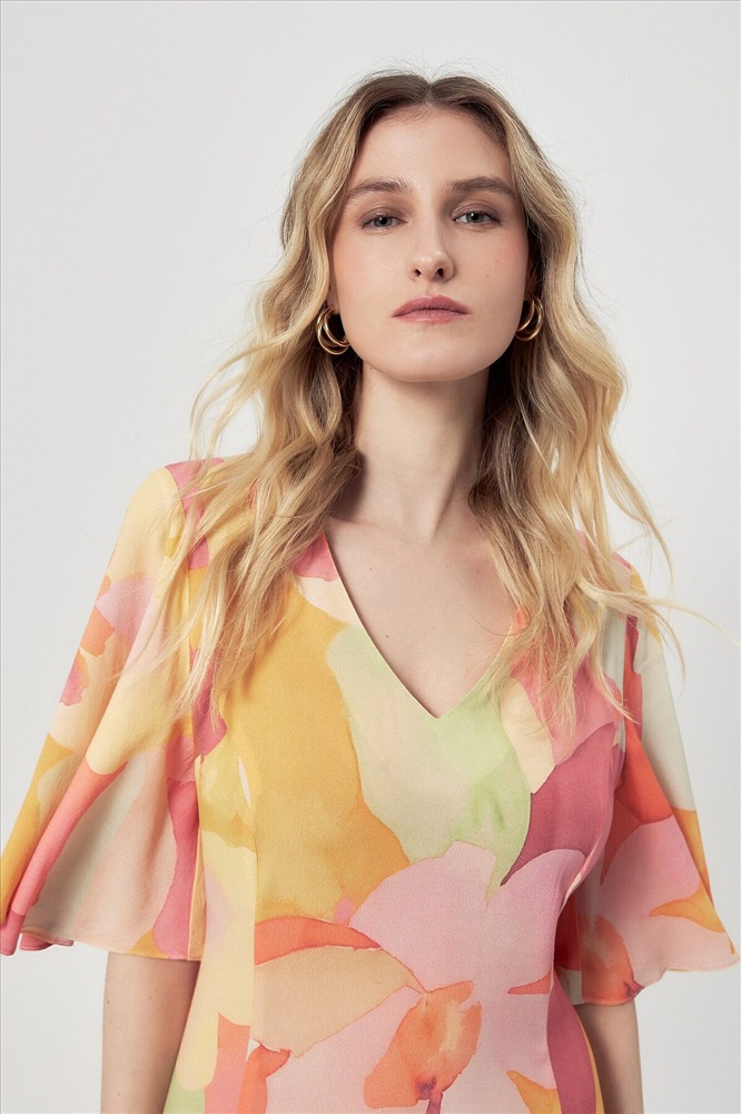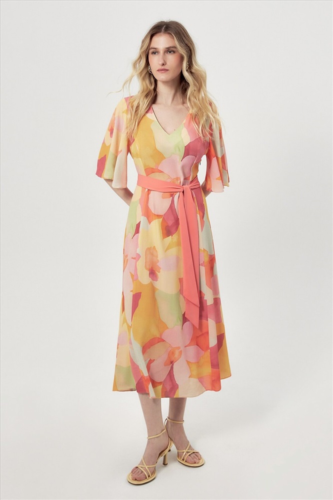 ID товара: 1136695 Состав: Вискоза 100% Сезон: Весна/Лето Длина: Миди Фасон: Полуприлегающий Рукав: Волан Вид застежки: Молния Вырез горловины: V-образный Рисунок: цветочный Декоративные элементы: Принт Основная ткань: Вискоза Стиль: Романтический Страна бренда: Россия Страна производства: Россия Романтичное платье из вискозной ткани в ярком летнем принте насыщенных оттенков с V-образным вырезом и поясом. Комментарии к товару