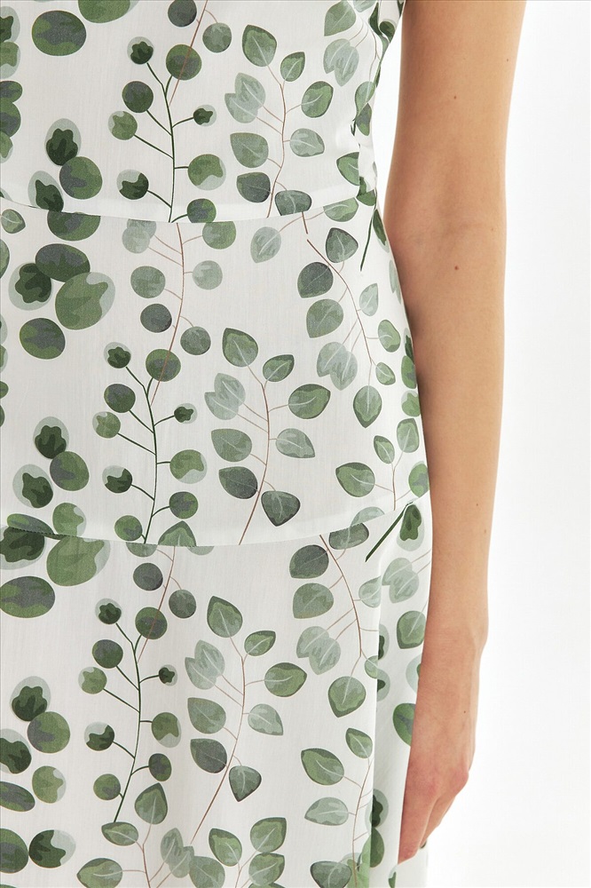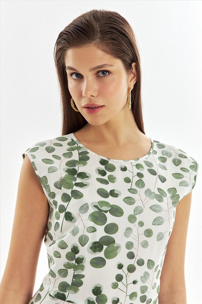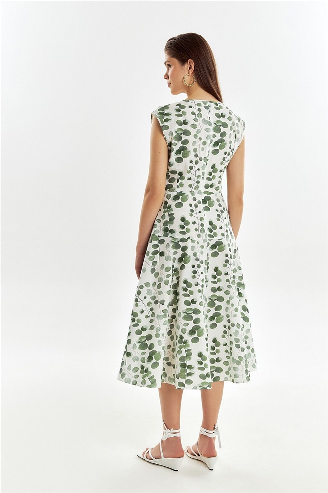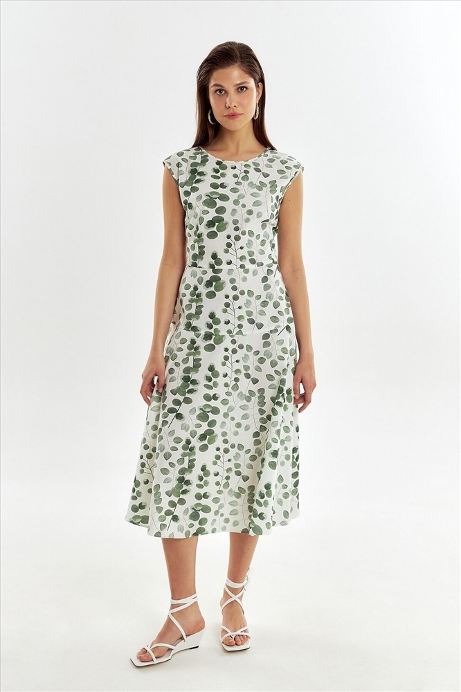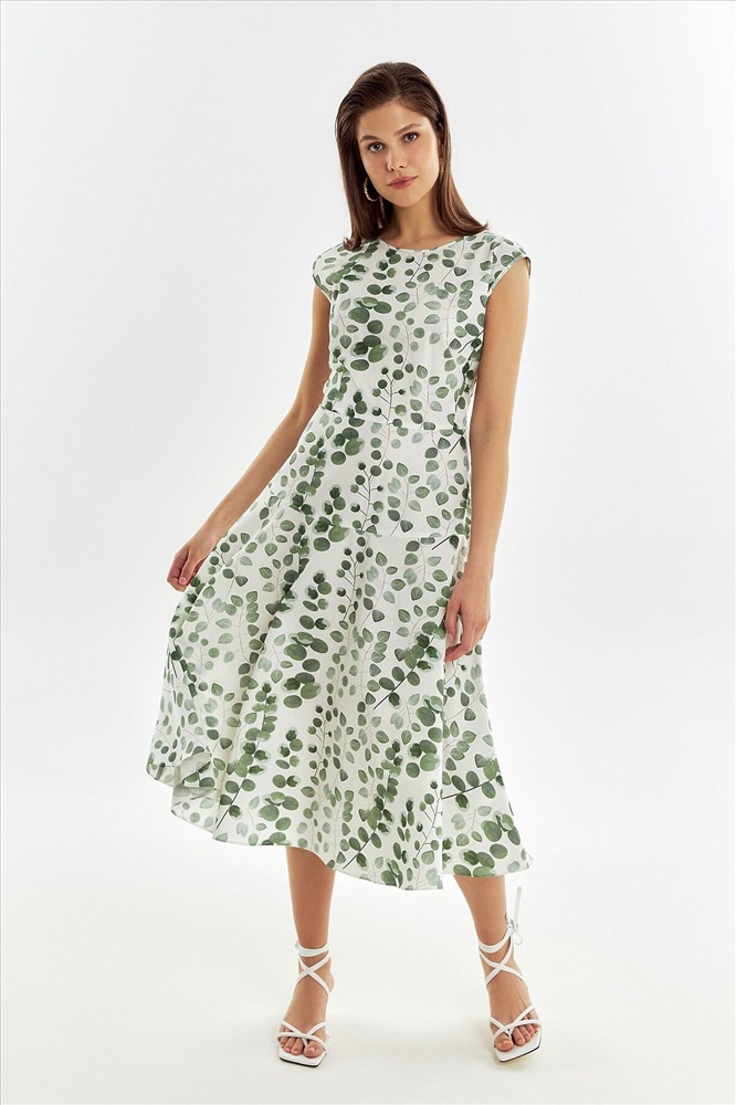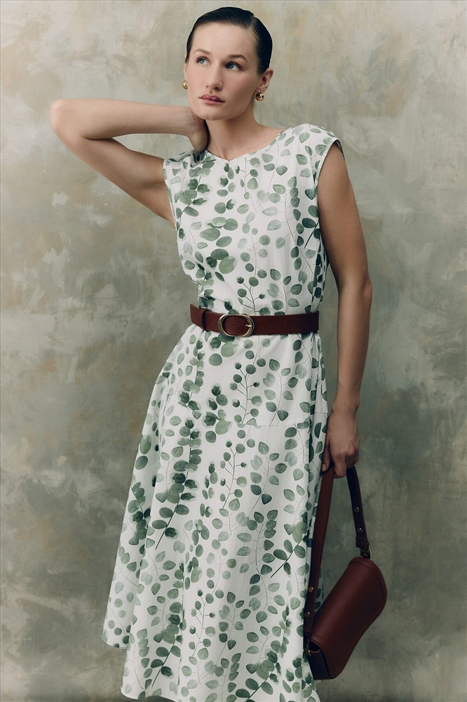 ID товара: 1136707 Состав: Хлопок 100% Сезон: Весна/Лето Длина: Миди Фасон: А-силуэт Рукав: Без рукавов Вид застежки: Молния Вырез горловины: Круглый Рисунок: растительный Декоративные элементы: Принт Основная ткань: Хлопок Стиль: Романтический Страна бренда: Россия Страна производства: Россия Прилегающее платье из хлопковой ткани с растительным принтом, отрезное по линии талии, кокетка до бедер, юбка полусолнце. Горловина круглая, потайная молния на спинке. Комментарии к товару