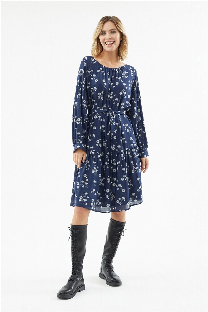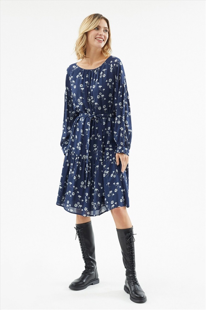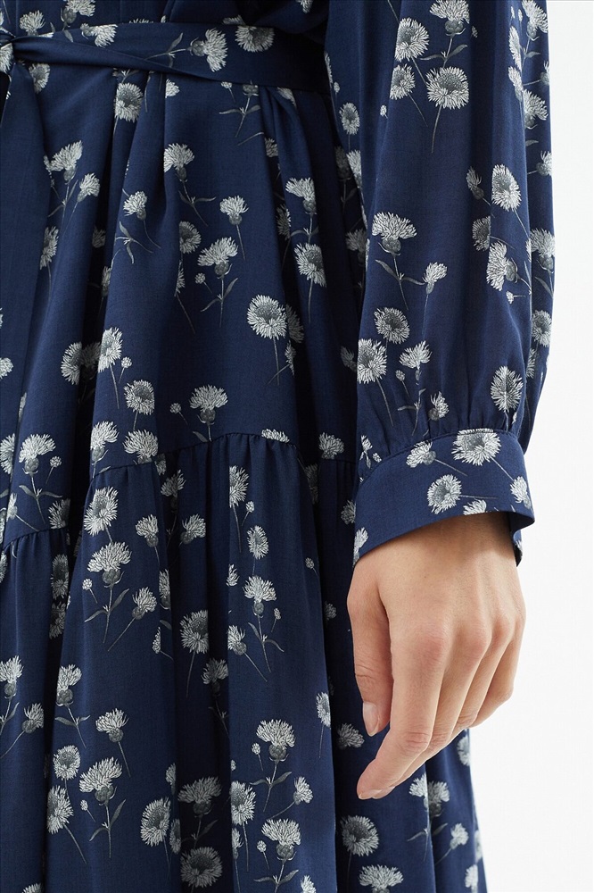 ID товара: 970028 Состав: Вискоза 100%; Подкладка- Вискоза 100% Сезон: Весна/Лето Длина: До колена Фасон: Свободный крой Рукав: Длинные Подкладка: Есть Вырез горловины: Округлый Рисунок: цветочный Декоративные элементы: Пояс Основная ткань: Вискоза Стиль: Романтический Страна бренда: Россия Страна производства: Россия Романтичное свободное платье из 100% вискозы с цветочным принтом. Горловина и рукава собраны на сборку, по низу платья идет широкий волан. На спинке капелька с пуговицей для лучшей посадки. Платье также имеет вискозную подкладку. В комплект входит пояс из основной ткани для придания приталенного силуэта. Комментарии к товару