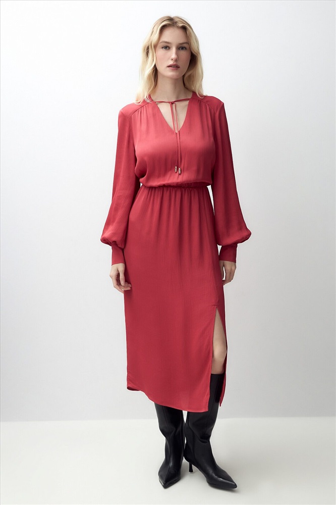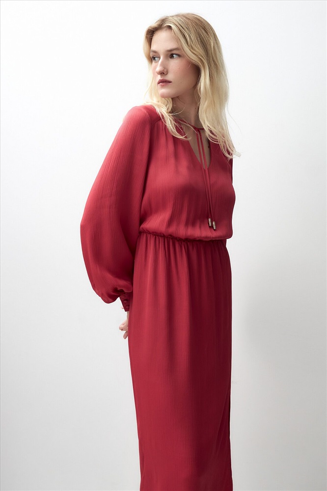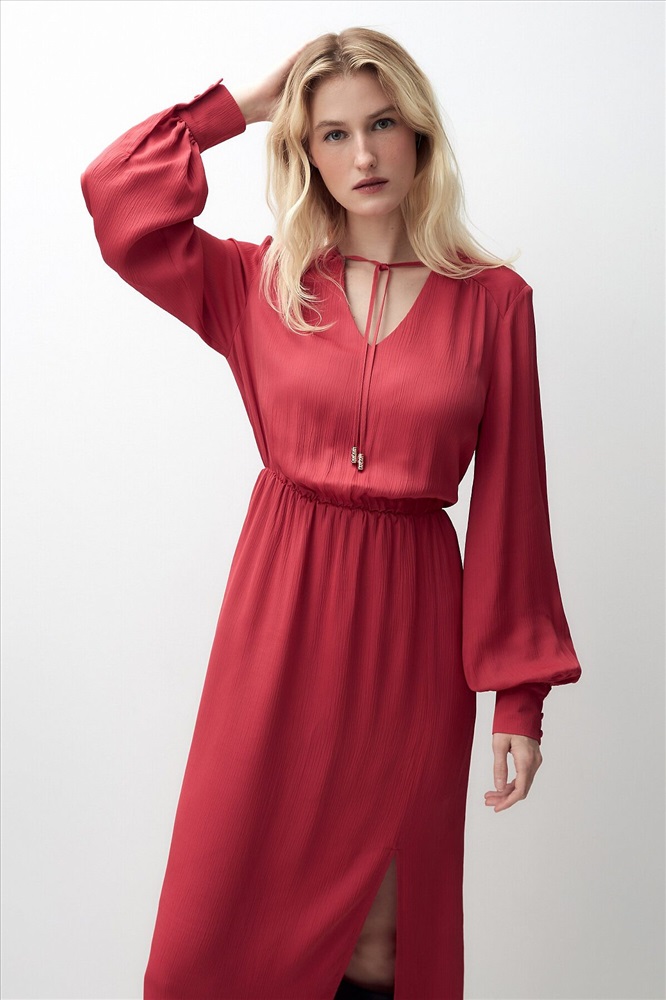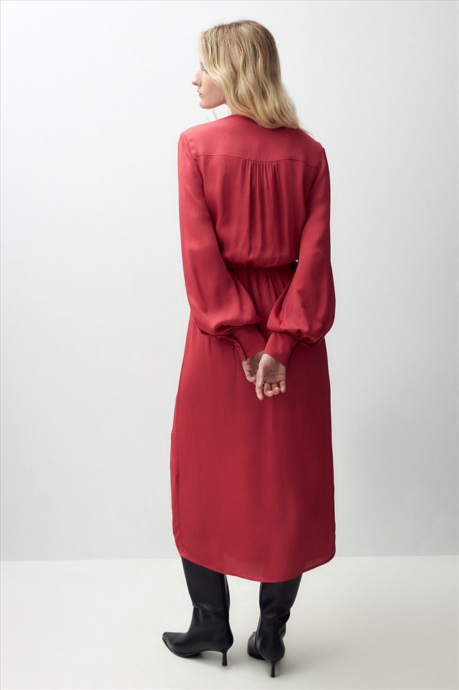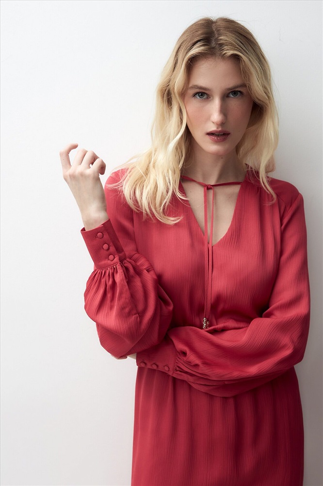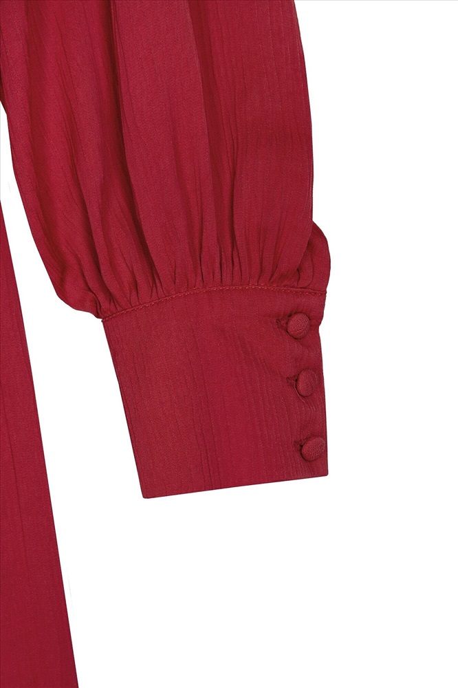 ID товара: 970060 Состав: Район 70%, Вискоза 30% Сезон: Весна/Лето Длина: Миди Фасон: Полуприлегающий Рукав: длинные Вырез горловины: V-образный Декоративные элементы: Завязки Основная ткань: Район Стиль: Романтический Страна бренда: Россия Страна производства: Россия Женственное платье длины миди полуприлегающего силуэта из 100% вискозы. Яркая малиново-красная фактурная ткань с крэш эффектом. V-образный вырез горловины и втачной рукав полной длины с объемом по низу и широкими манжетами на пуговицах. На талии резинка для создания более приталенного силуэта. Комментарии к товару