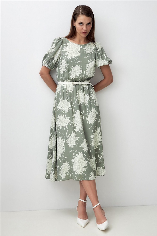 ID товара: 970091 Состав: Вискоза 100%; Подкладка- Полиэстер 100% Сезон: Весна/Лето Длина: Миди Фасон: Расклешенное Рукав: Короткие Вырез горловины: Округлый Рисунок: Цветы Декоративные элементы: Пояс Основная ткань: Вискоза Стиль: Романтический Страна бренда: Россия Страна производства: Россия Романтичное приталенное платье из вискозной ткани с принтом и юбкой-полусолнце. Платье с небольшим втачным рукавом на резинке и круглой горловиной. В комплект входит тонкий пояс из экокожи молочного цвета. Комментарии к товару