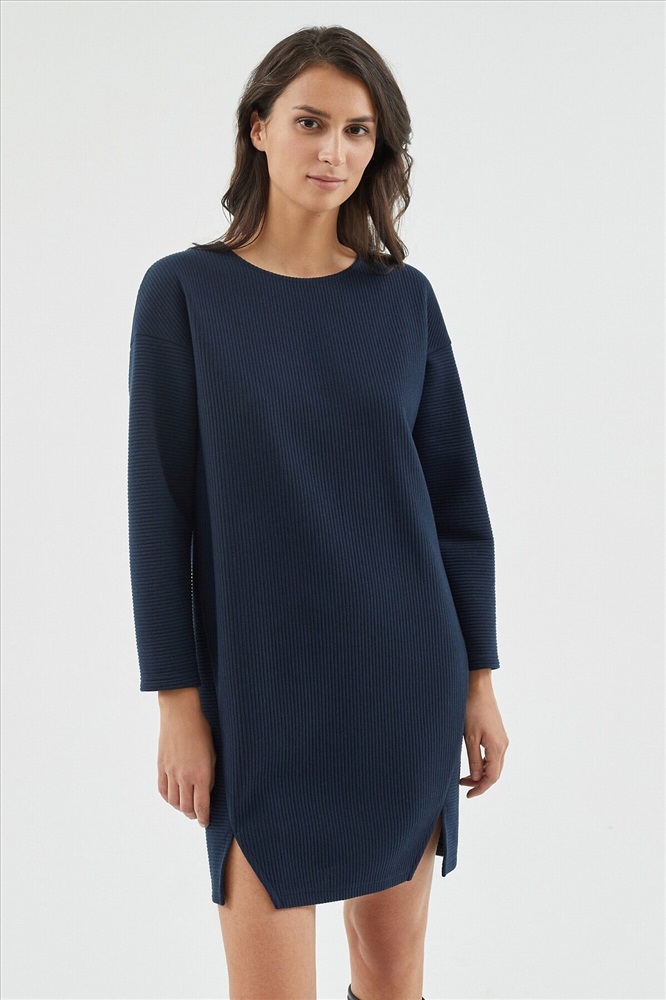 ID товара: 970166 Состав: Тенсель 78%, Хлопок 22% Сезон: Осень/Зима Длина: Мини Фасон: Свободный крой Рукав: 3/4 Вырез горловины: Округлый Основная ткань: Тенсел Стиль: Деловой стиль Страна бренда: Россия Страна производства: Россия Платье-туника из фактурного трикотажа свободного силуэта с изюминкой в виде фигурных рельефов, завершающихся элегантными разрезами. Комментарии к товару